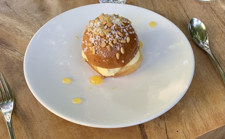 Menus de midi très bons, assaisonnements, textures, goûts équilibrés, le tout dans un joli cadre. On retiendra particulièrement l’exquise tropézienne. Qualité et quantité sont impeccables. Un petit couac sur l’apéritif (non servi/indisponible?) qui sera finalement vite corrigé ensuite avec le sourire (derrière le masque 🙂). Nous avons passé un excellent moment.