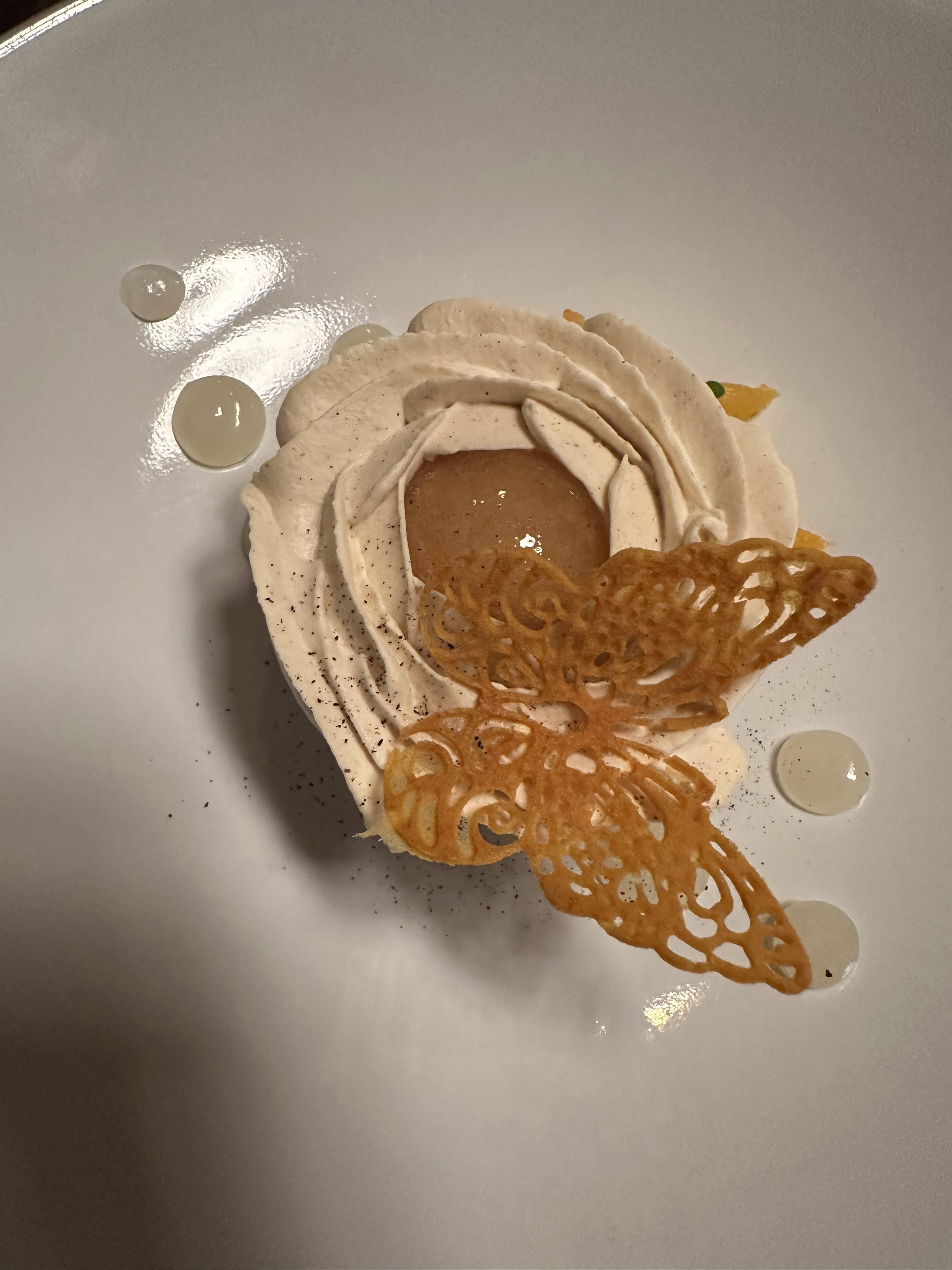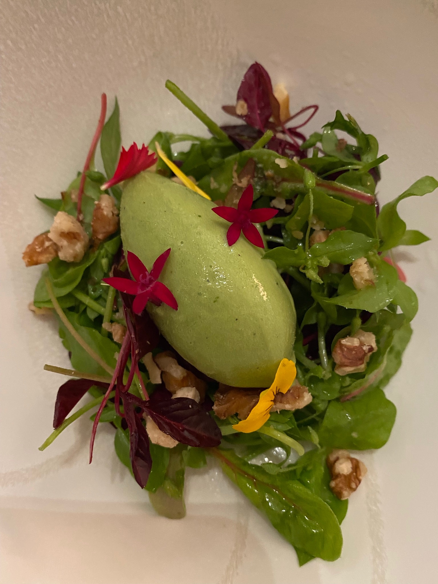 Un très bon repas ! Mention spéciale pour le soufflé glacé, incroyable. Dommage qu’il n’y ait qu’une seule option végétarienne cependant, dans un restaurant de ce standing je m’attendais à un peu plus d’inclusion…