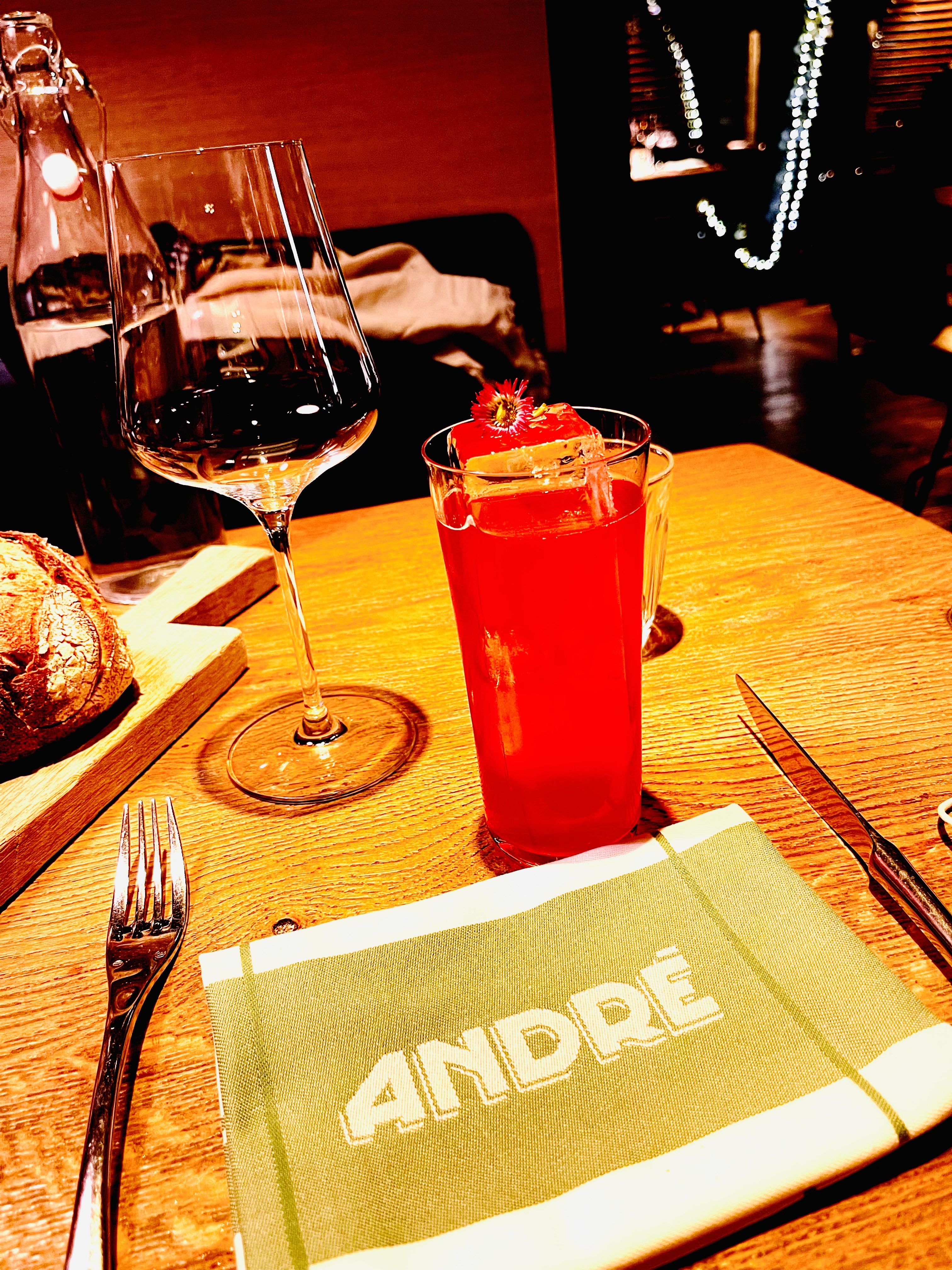 Manger chez André ce n'est pas simplement aller au restaurant, c'est une expérience extraordinaire. Tout est absolument parfait, le cadre, l'esthétique des assiettes, les quantités, le goût (je ne suis pas fan des aubergines, mais cuisinées comme ça j'en mangerai tous les jours), le soin apporté au service, les cocktails maison sans alcool... Si je ne me trompe pas nous avons été servis par Matteo qui a été génial du début à la fin, avenant, souriant, d'une gentillesse à laquelle nous ne nous attendions pas. Merci pour l'idée de déguster nos boissons post repas dans les jardins de l'hôtel. Vous avez aidé à faire de cette soirée père/fille un moment hors du temps. N'hésitez plus à réserver une table pour vivre cette expérience qui apporte beaucoup de bonheur.