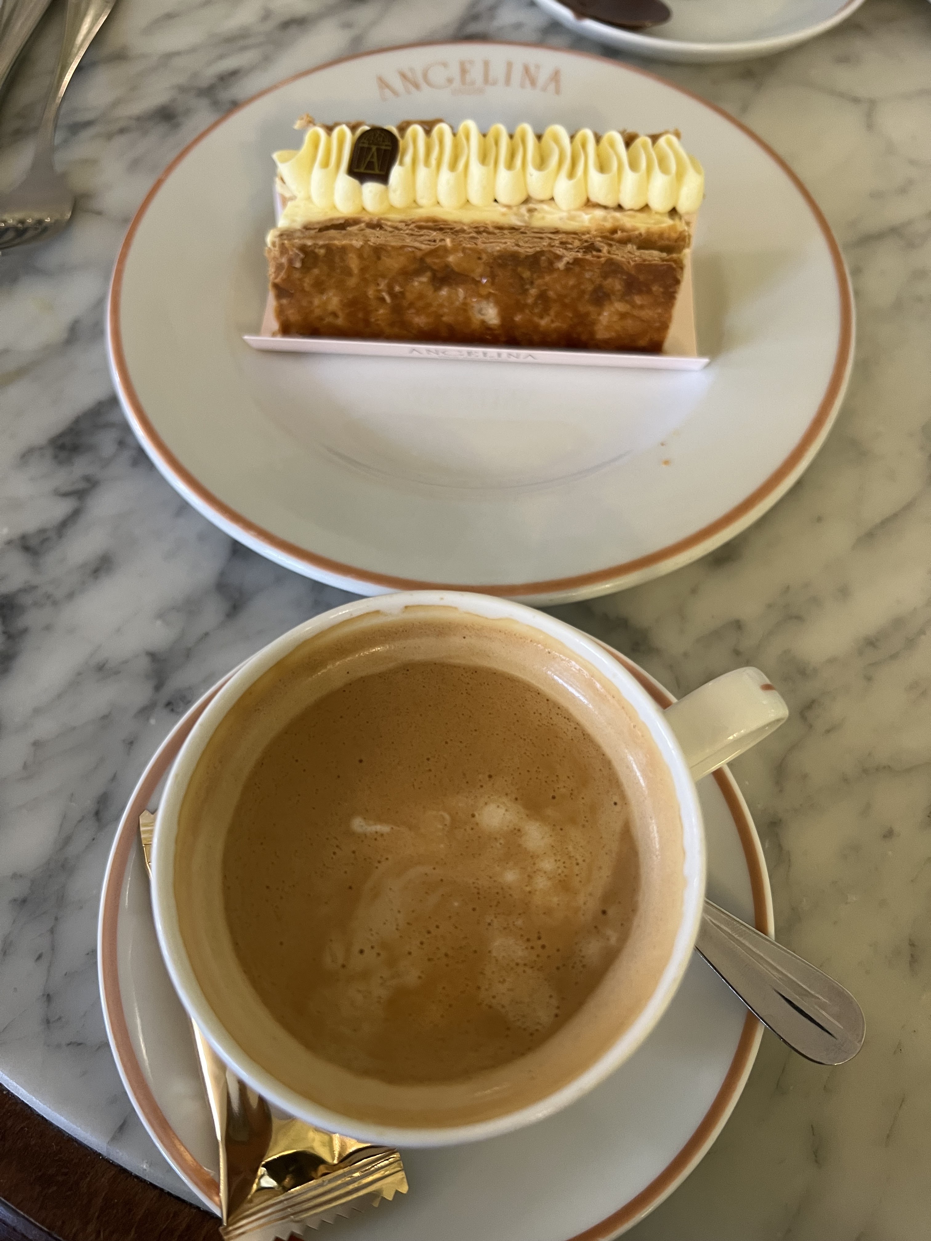 Première fois pour moi chez Angelina et je n'y remettrai pas les pieds. Le chocolat chaud n'était pas chaud et il était très très épais, imbuvable pour moi. La chantilly anecdotique tellement le contenant était ridiculement petit, surtout vu le prix. Le grand café au lait c'était de l'eau avec un goût de café au lait. Concernant le service on se serait cru dans le bistrot du coin. C'est dommage de se donner une image de luxe alors que ce n'est même pas passable. À fuir.