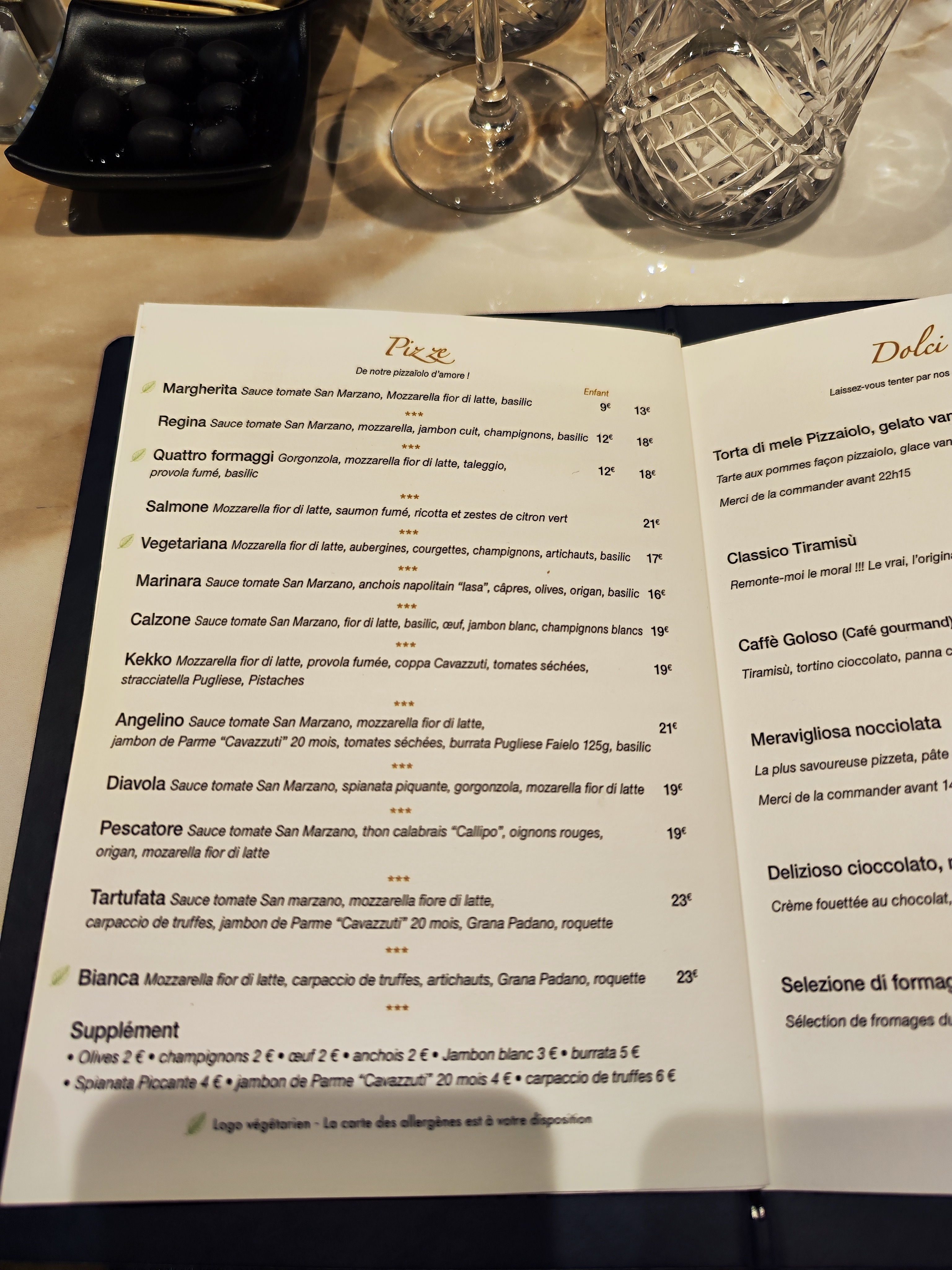 Assez déçue ! J’en attendais beaucoup plus compte tenu des avis, de la déco, de la carte… Service bof (trop familier et plats non servis en même temps), restaurant trop bruyant (aucun système phonique pour étouffer le bruit des clients), cuisine chère pour des plats peu copieux (pâtes). Nous avons pris les raviolis ricotta . 17€ sur le menu internet, 18€ sur la carte il me semble et on nous les a facturés 19 ou 20€ (je ne me souviens plus trop c’était début avril quoiqu’il en soit il y avait 3 prix différents pour sûr). C’était très petit. Nous avons ensuite pris une Margherita avec un supplément œuf. Hummmm. Je n’avais jamais vu un œuf mis comme cela sur une pizza. Si petit… Le tiramisu était ok. On a testé mais on ne reviendra pas. Je préfère le resto italien d’à côté sans hésitation ;-). UPDATE Pour répondre au propriétaire je me permets de changer mon avis. Chaque fin de mois j’essaye de rédiger un avis sur les endroits où j’ai été. Madame, Monsieur, nos sommes venus début avril 2023. Cette mauvaise foi n’est pas très jolie mais finalement ça me confirme mon avis. En tout cas regardez votre site internet et votre carte vous verrez au moins la différence de prix dont je parle ;-). J’ai quand même vu quelques avis négatifs, la perfection n’existe pas. Mon ressenti dans votre restaurant est le même que votre réponse, un petit quelque chose d’hautain et prétentieux…