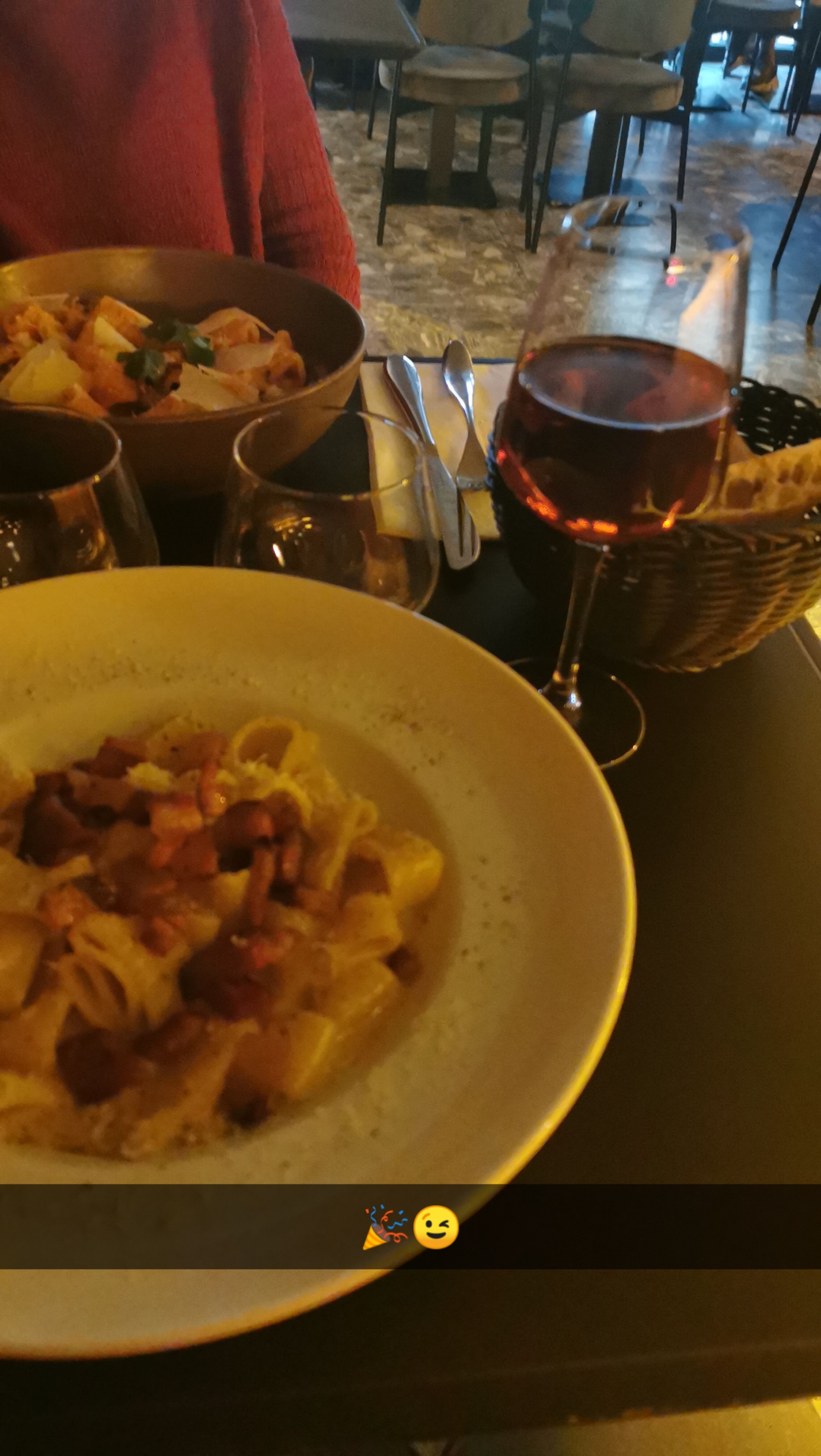 Bonjour, Mes rigatonis alla carbonara étaient excellentes, une remarque concernant les guanciales (joues), elles étaient trop trop trop grillés !! Vin rosso des Pouilles très agréable. Points à améliorer : l'éclairage est un peu trop faible aux tables et salle du 1er étage bruyante , la prochaine fois je réserverai au rdc... Bonne note tt de mm. Cordialement.