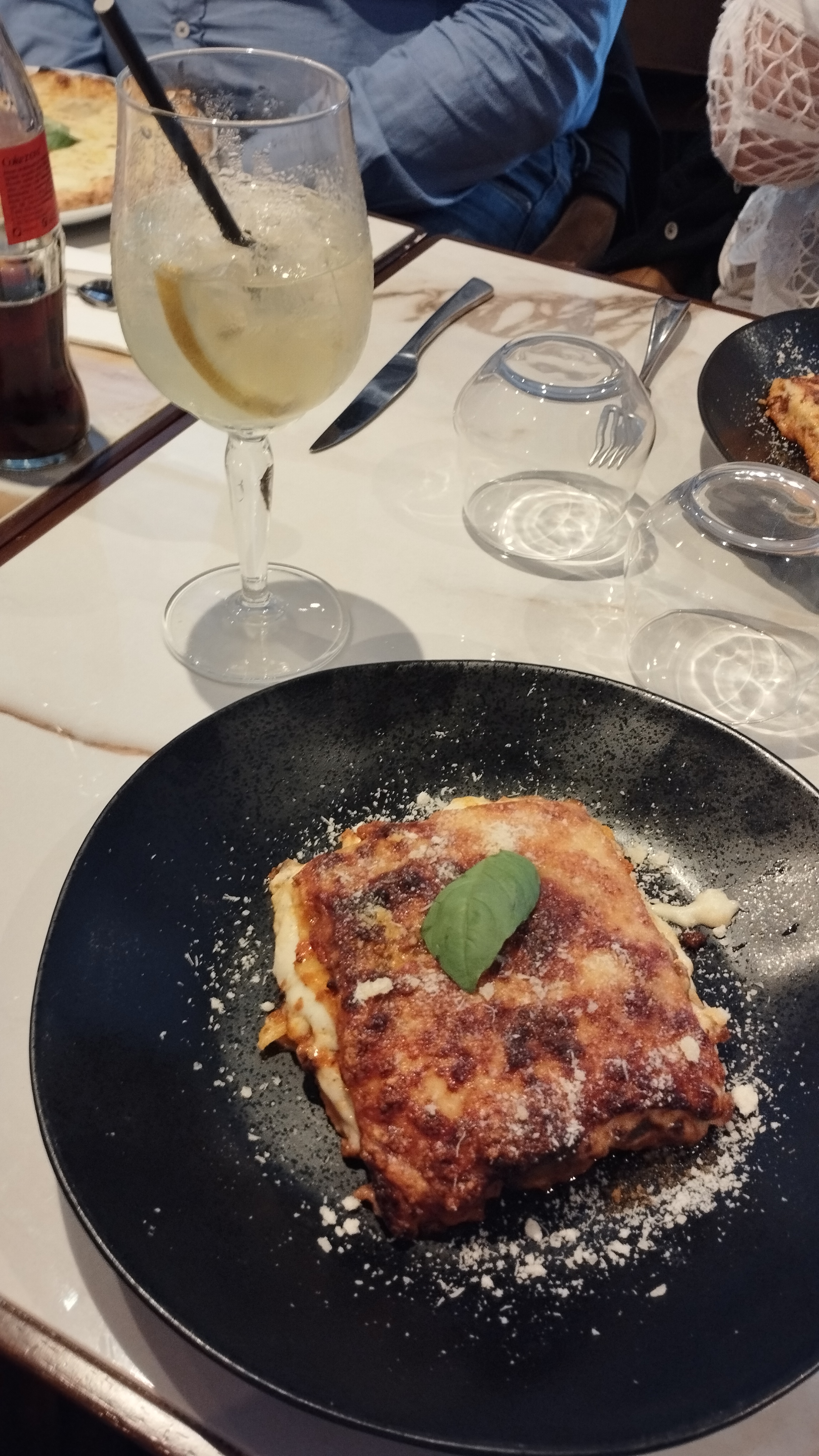 J'ai réservé tardivement pour 18 personnes et ils m'ont installé à l'étage sur 2 tablées, donc sympas et arrangeants 👍 Pas mal d'espace donc à l'étage, mais aussi RDC et terrasse extérieure. La déco est sympa, de belles photos de cinéma en rapport avec l'Italie. Côté restauration, déjà de bons cocktails et différents spritz proposés, pour changer de l'Aperol. Ils font de bonnes pizzas mais j'avoue m'être régalé par deux fois avec leurs lasagnes 😜 En pause midi, nous n'avons pas eu le temps de déguster un dessert, déçu, je voulais tester le tiramisu bien évidemment. Buon appetito ! 🇮🇹🍝😋🍕