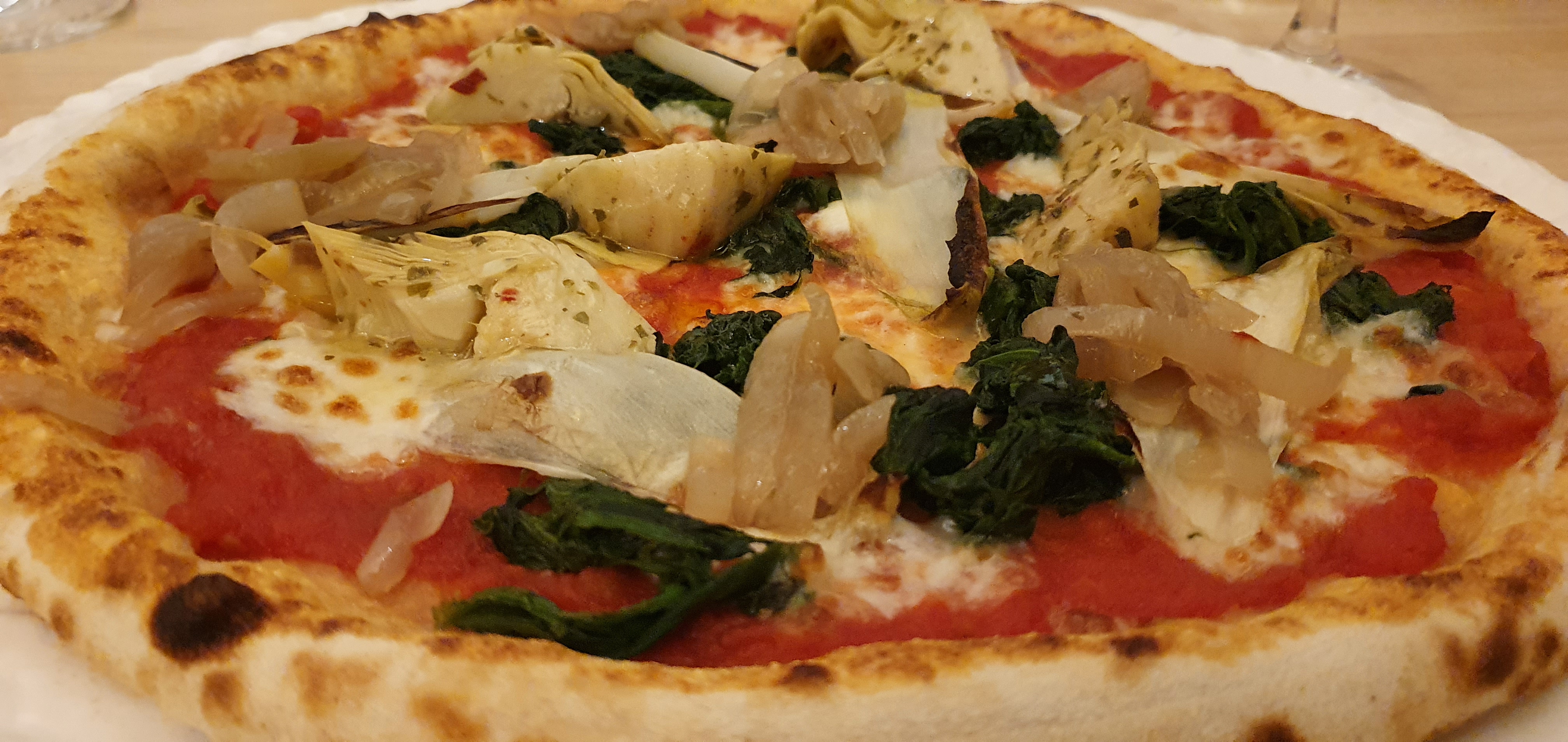 Restaurant dans un cadre agréable. Grandes salles. De la réservation au service nous avons été très bien accueillis. Nous avons pris la planche du moment en antipasti pas mal du tout et un bon velouté de champignon. Pour les appétits normaux prendre les pizzas 26cm amplement suffisante vs les grandes de 29cm. Le choix en pizza est extrêmement varié. Spécial pour celles à la crème de gorgonzola. La carciofo était bonne (car la pâte, la cuisson et les.produits sont bons) mais elle manquait d'assaisonnement ou d'un petit plus pour relever le tout. Une belle expérience j'y retournerai avec plaisir.