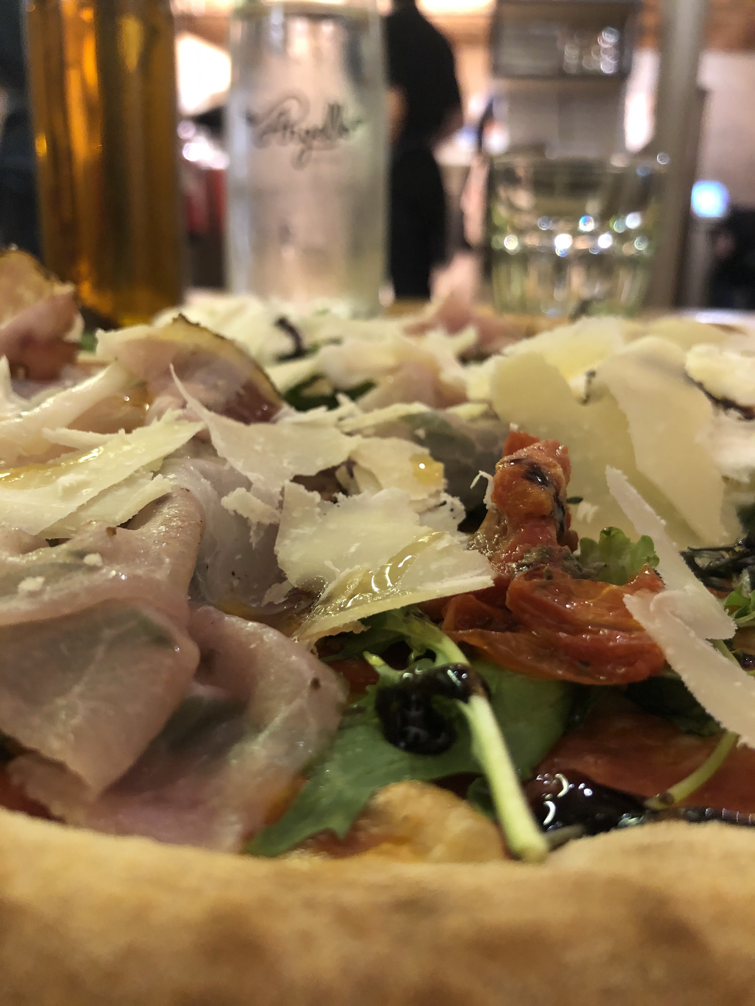 endroit chic et très bien placer, intérieur jolie et confortable. des serveurs de qualité malgré une petite attente du au rush pas de soucis :) .Parlons maintenant des choses qui fâchent: le prix entre 15 et 22e pour un pizza de grande taille ok, cependant seul 1 ou 2 pizza sont bien garnies, le rapport qualité prix n'est pas au rendez-vous en terme de satiété, les pizza sont excellentes et de bonne qualités mais manque de garniture. jusque la pas de gros problème puis advienne les dessert et la terrible tiramisu breton dans un restaurant italien servi dans un ramequin pour bébé pour 6e de même pour le dessert le plus cher la foret noire dans une tasse a 8e50 déjà j'ai rien dit pour le coca a 4e10 mais la c'est la juste aberrant. et me dite pas gnagna c'est ca les restau luxe moi j'appelle ca du scam.