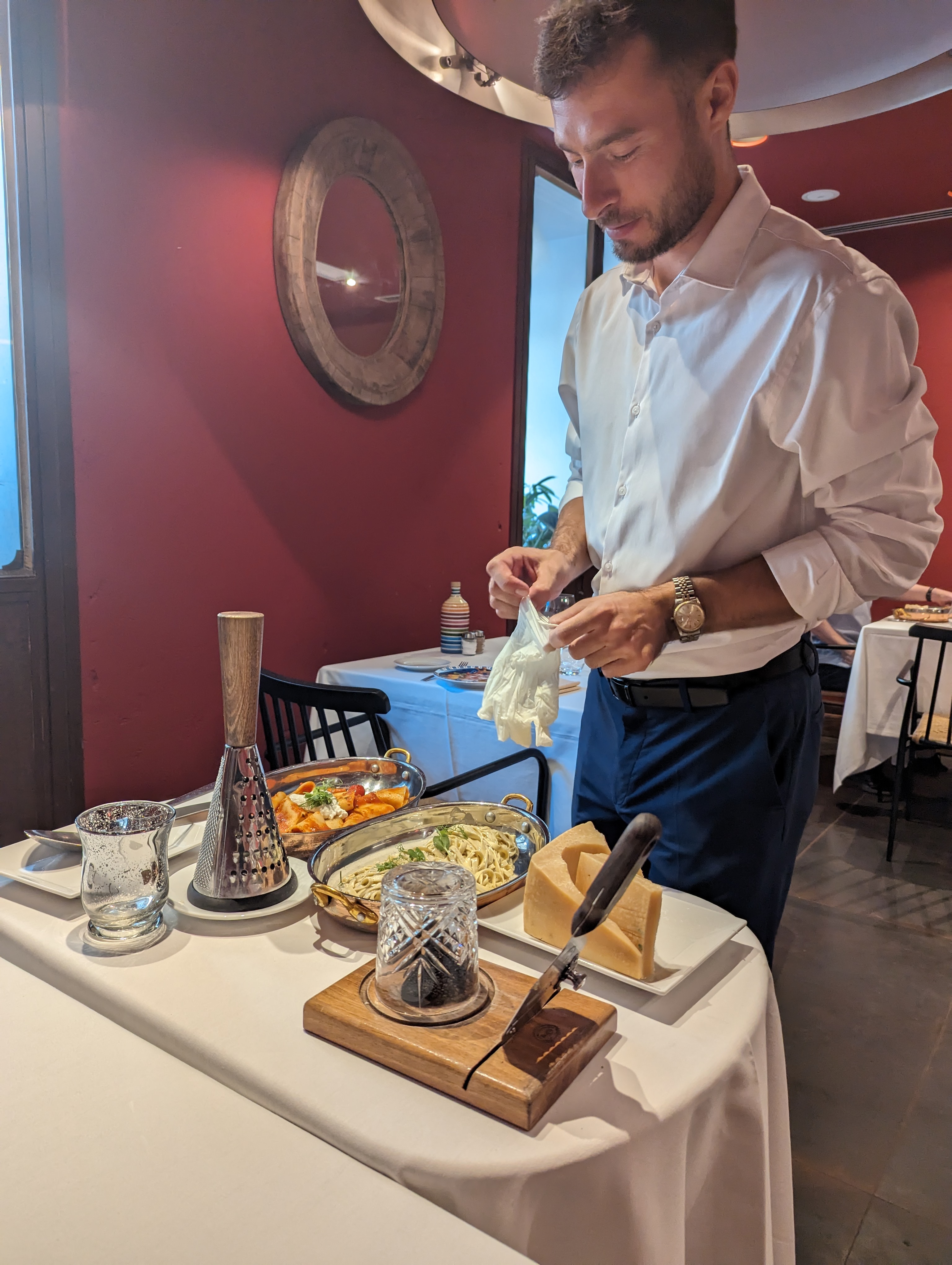Nous avons quitté la station de tramway et avons trouvé ce restaurant très sympa avec une excellente décoration et une variété surprenante de plats italiens. Le service était le meilleur, la nourriture était spectaculaire, 2 délicieuses pâtes et quelques crevettes à lécher les doigts en entrée. Les portions sont très généreuses, nous avons dû partir car elles étaient assez copieuses. Nous avons très bien mangé et passé un très bon moment. 100% recommandé, et merci au serveur qui a toujours été très sympathique et patient !!!