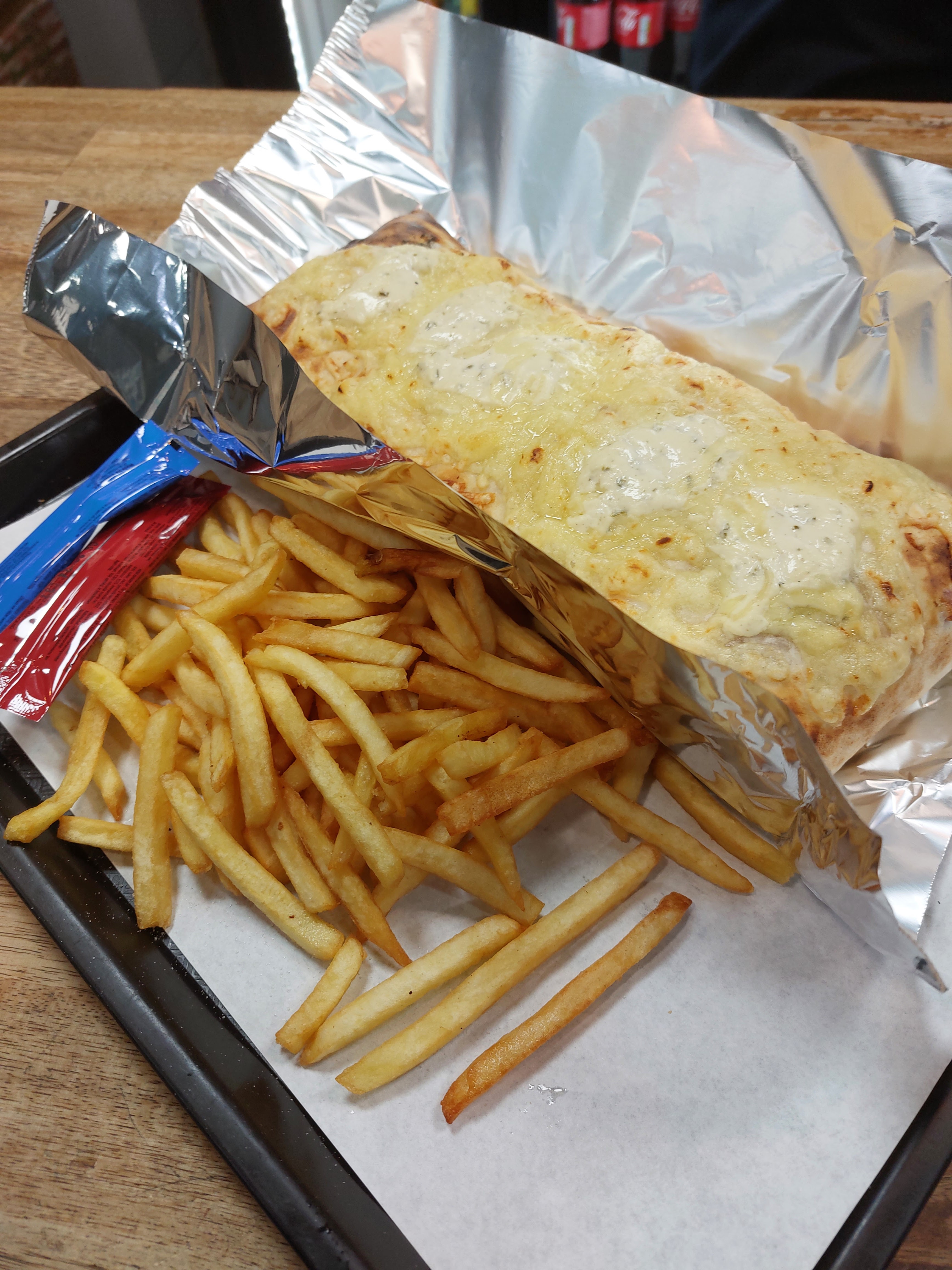 Beaucoup beaucoup trop de sauces dans les tacos. On dirait que le cuisinier un pot par tacos. 50€ parti à la poubelle car dégoûtant. Les frites dans la barquette peuvent se compter sur les doigts d’une main. Annonce de 15 mins d’attente mais c’est plutôt 45 mins d’attente. Je passerai mon tour la prochaine fois