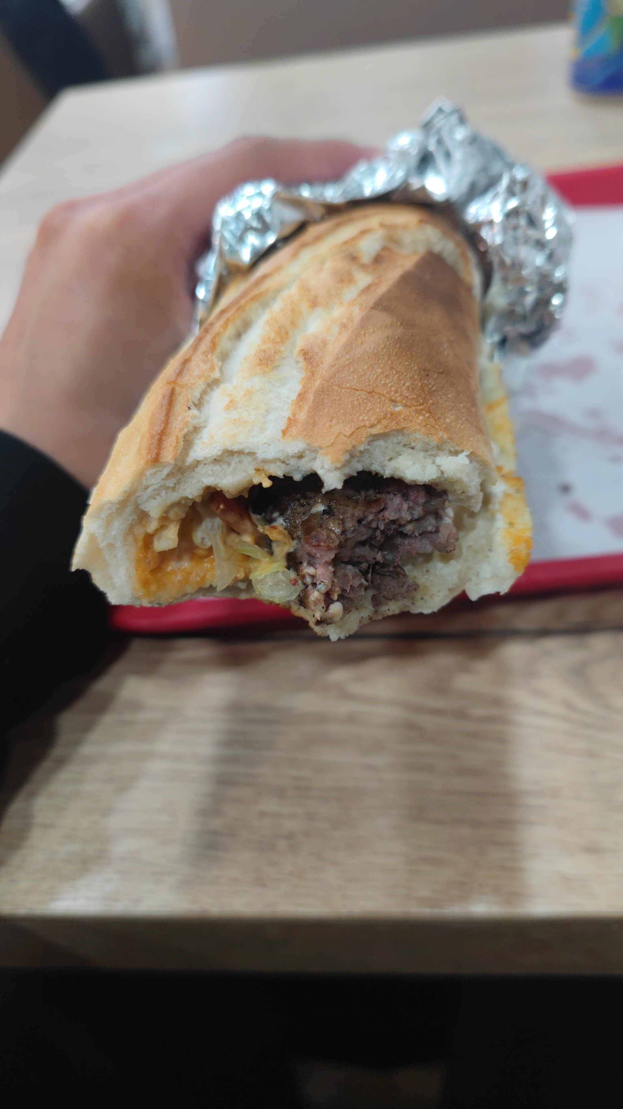 Dégueulasse. Viande abattu au tazer en Ukraine je pense. J'ai été malade toute la nuit. L'autre il fait les sandwichs avec les même gants qui lui sert à encaisser, filmer les sandwichs et nettoyer les tables. Ça craint