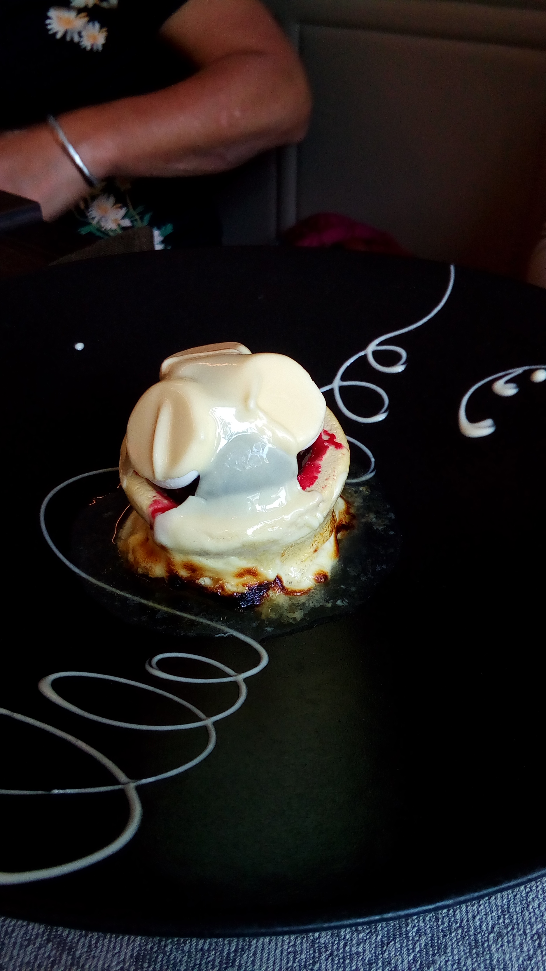 Bons produits, bon accueil, beau cadre, en dessert, une boule de chocolat fourrée framboises sur un lit de crème flambée, arrosée framboise, qui s'ouvre sous l'effet de la chaleur. Top... Juste un tout petit plus dans la quantité de l'entrée et du plat aurait été apprécié.
