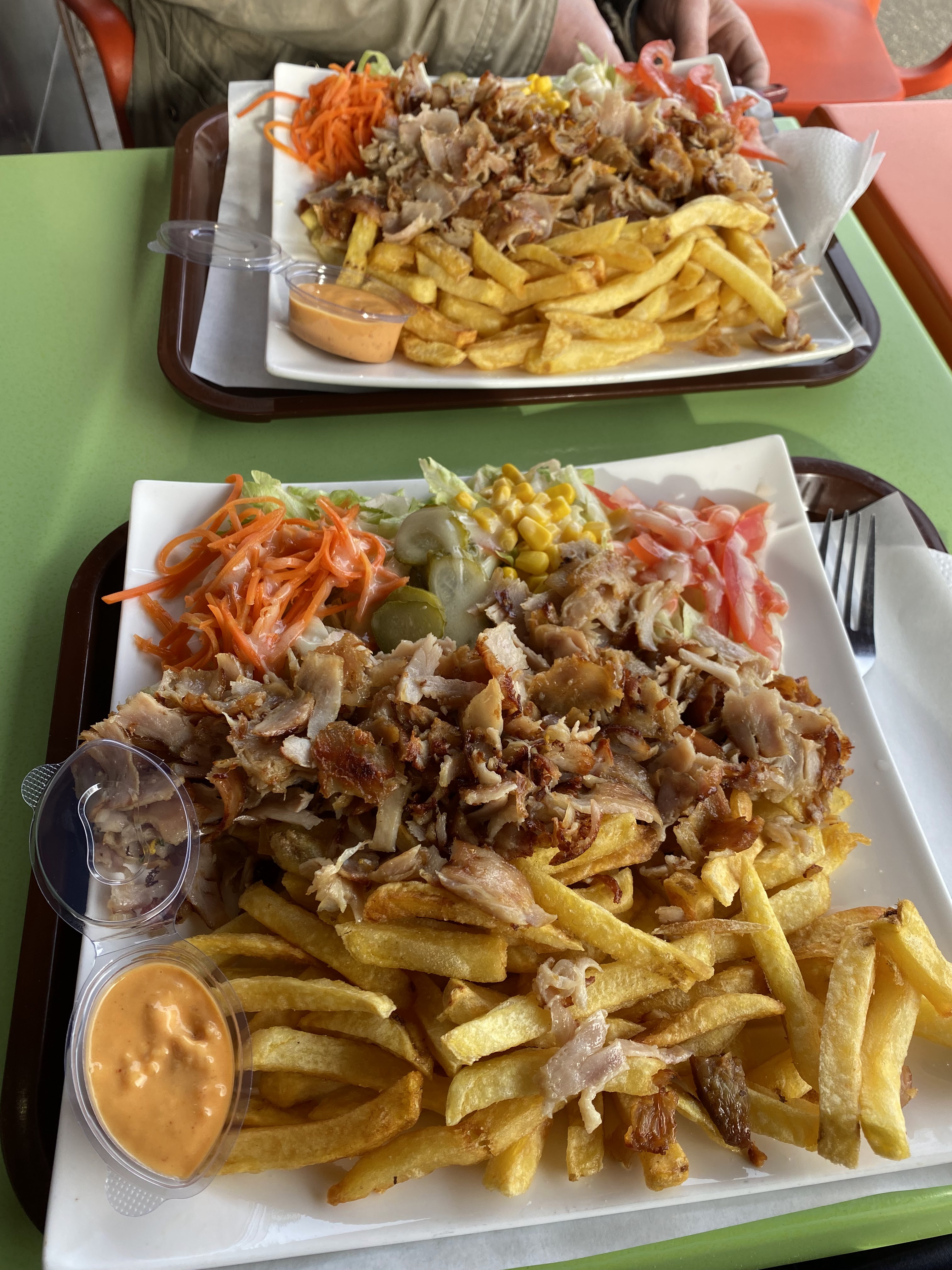 Catastrophique !!! Viande de kebab cramé Des frites, bon je sais mm pas si on peut appeler sa des frites c’est cailloux blindé d’huile . A fuir !!!