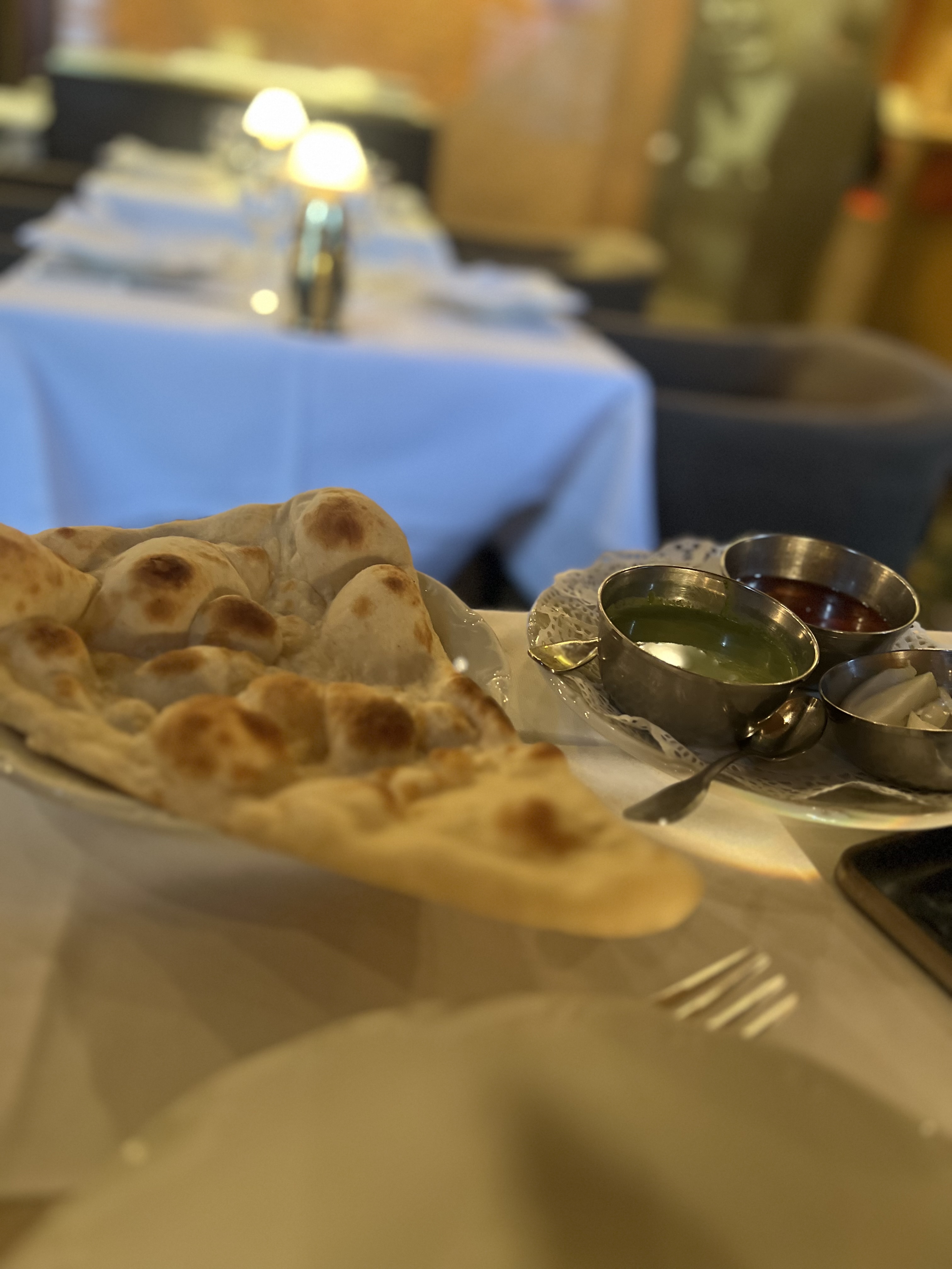 Ambiance feutrée et calme. Les naan sont fous. Les prix assez élèves mais on paye ma qualité et le lieu, c'est une jolie expérience