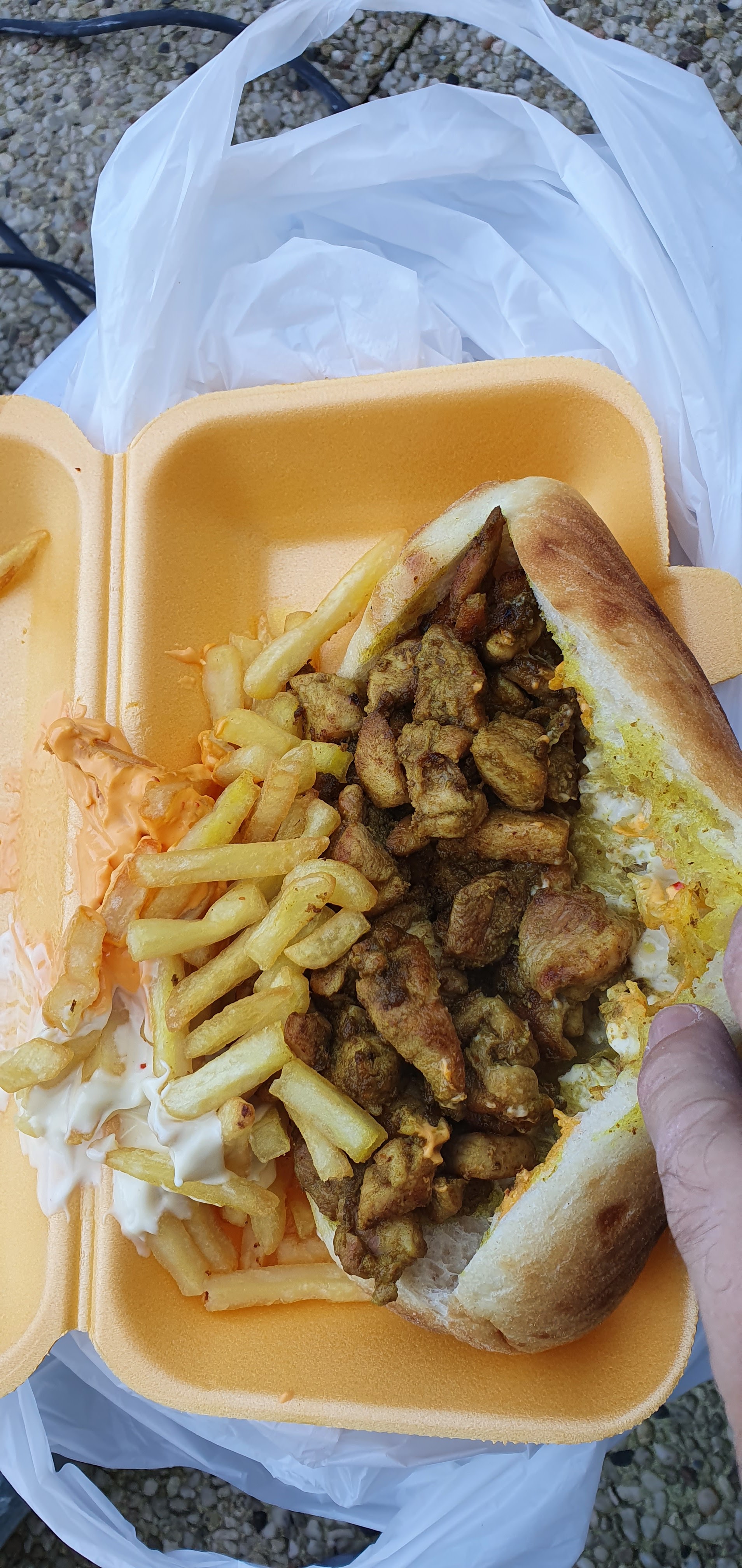 Bonjour, Je ne recommande pas, c'est kebab, les frites ne sont pas cuite. Pour la vente à emporter, l'emballage n'est pas adapté pour risquer se retrouver vos boîtes ouvertes avec votre repas au fond du sac.Ils sont vraiment pas généreux du tout.J'ai connu l'ancienne direction et franchement, c'est le jour et la nuit. Impossible que je remette les pieds un jour.