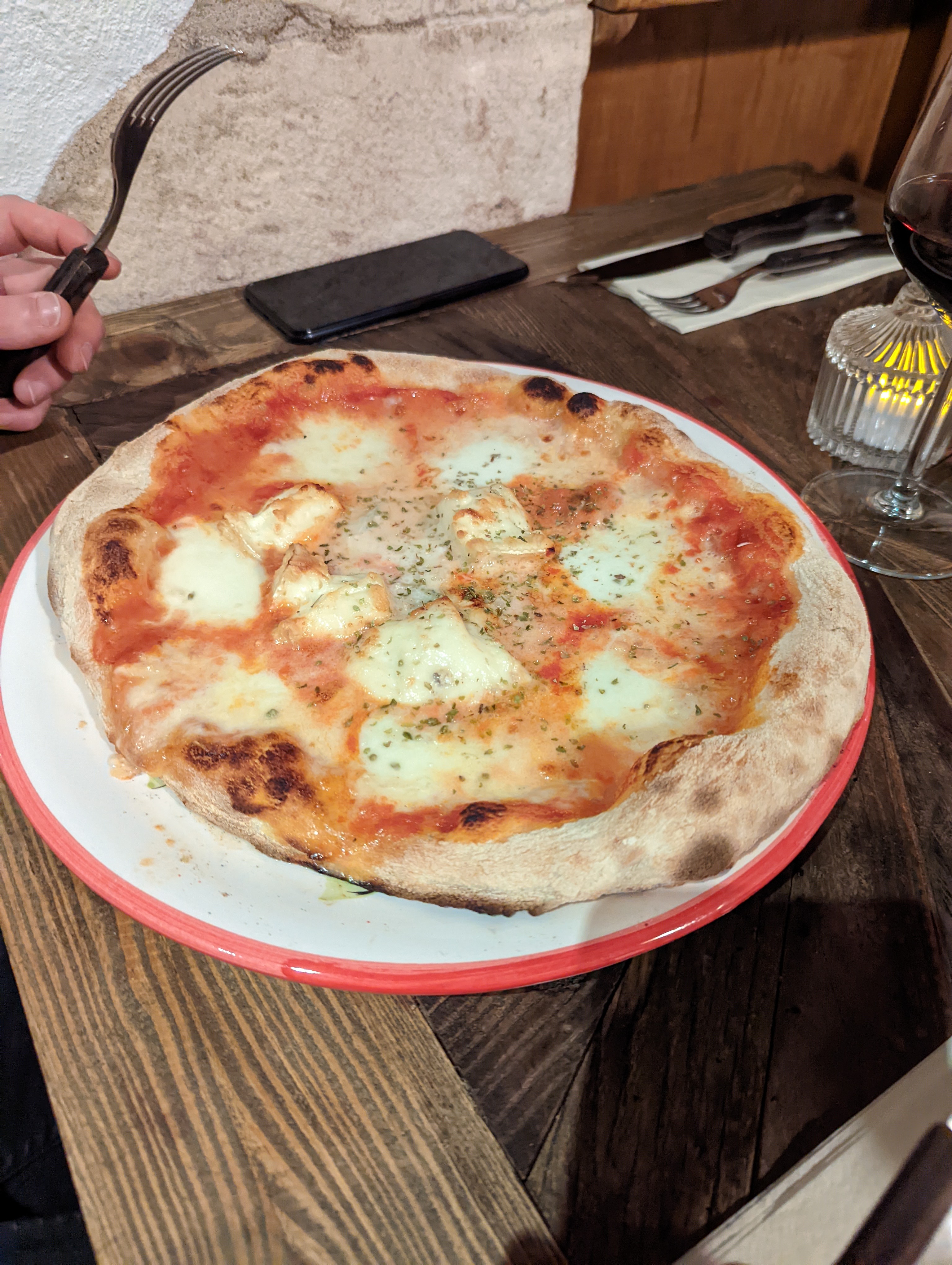 Nous étions que de passage dans la ville, et nous sommes passés dans cette petite rue et rien que l’odeur des pizzas cuites au feu de bois nous a indiqué que la qualité était incroyable! Nous n’avons pas été déçus quand nous avons décidé d’y aller manger au soir. Les pizzas sont TRÈS bien fournies, de TRÈS bonne qualité. Les desserts sont si gourmands, une vraie « touch » pour eux. Je vous recommande et je vous conseille de réserver! Les hôtes étaient très bienveillants.