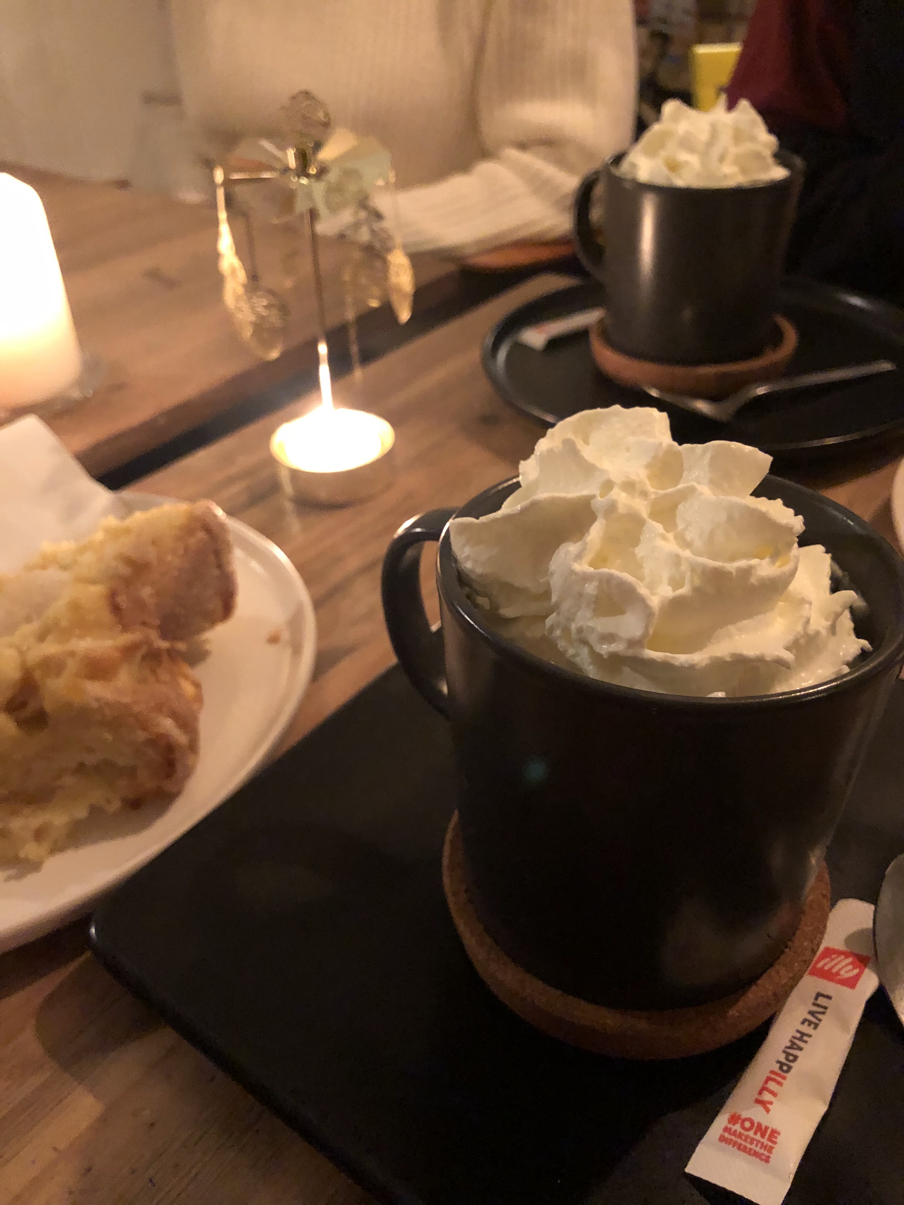 Petit salon de thé extrêmement cosy avec de délicieuses boissons chaudes et pâtisseries! Merci pour l’option sans gluten!!!