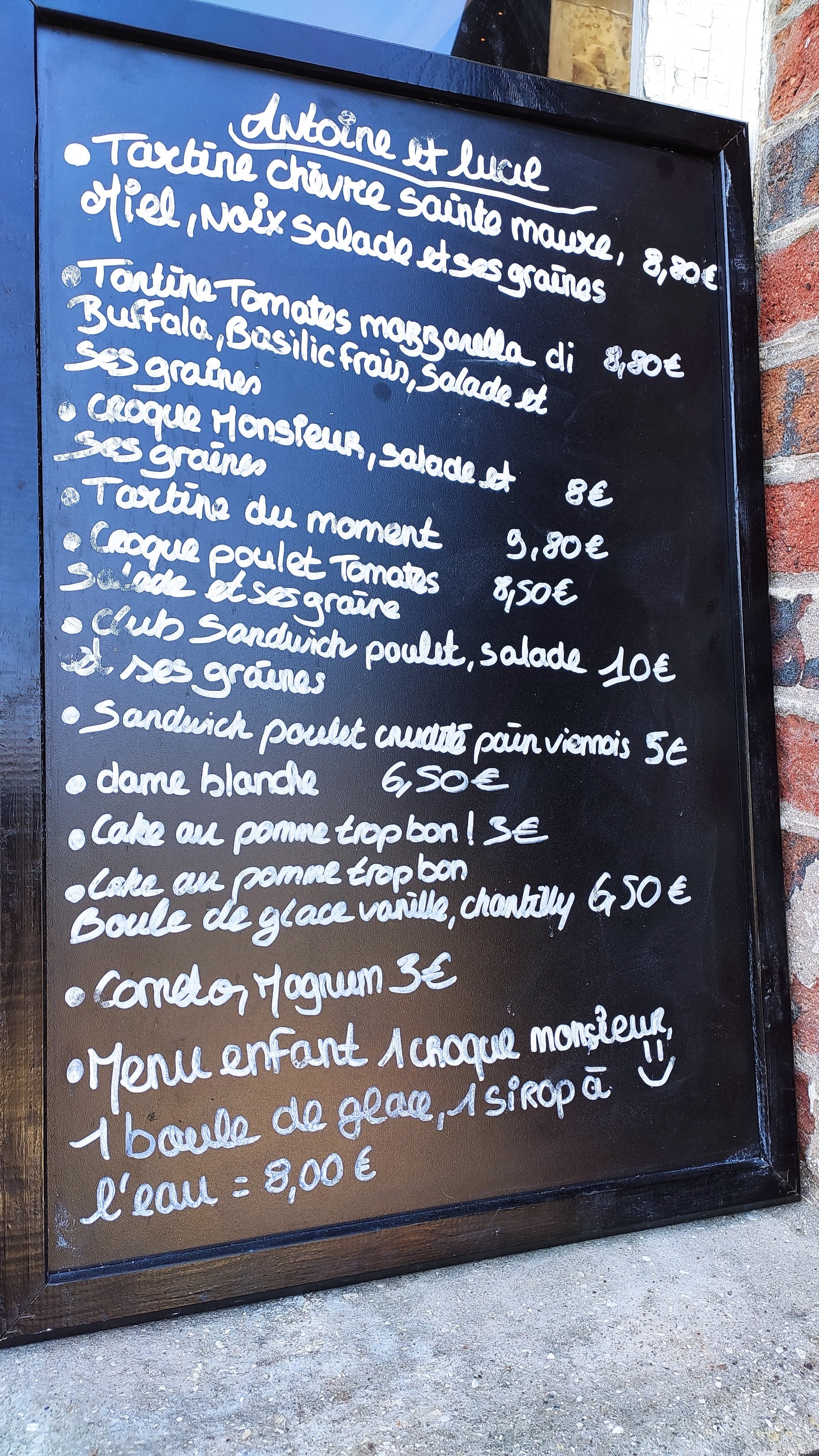 Nous avons choisi Antoine et Lucile pour boire un verre sur leur terrasse après une belle promenade dans le charmant village de Beuvron-en-Auge (Septembre 2023). Malheureusement, malgré une personne seule en charge des brunchs et des boissons, nous avons attendu 35 minutes pour deux diabolos. Heureusement, le soleil normand était au rendez-vous. D'autres clients sont partis sans commander en raison de l'attente. Ce qui a été décevant, c'est qu'une habitante du village, arrivée après nous, a été servie avant nous. De plus, sa forte consommation de tabac à proximité était désagréable. Les prix semblent excessifs, peut-être liés au classement du village comme le plus beau de France.