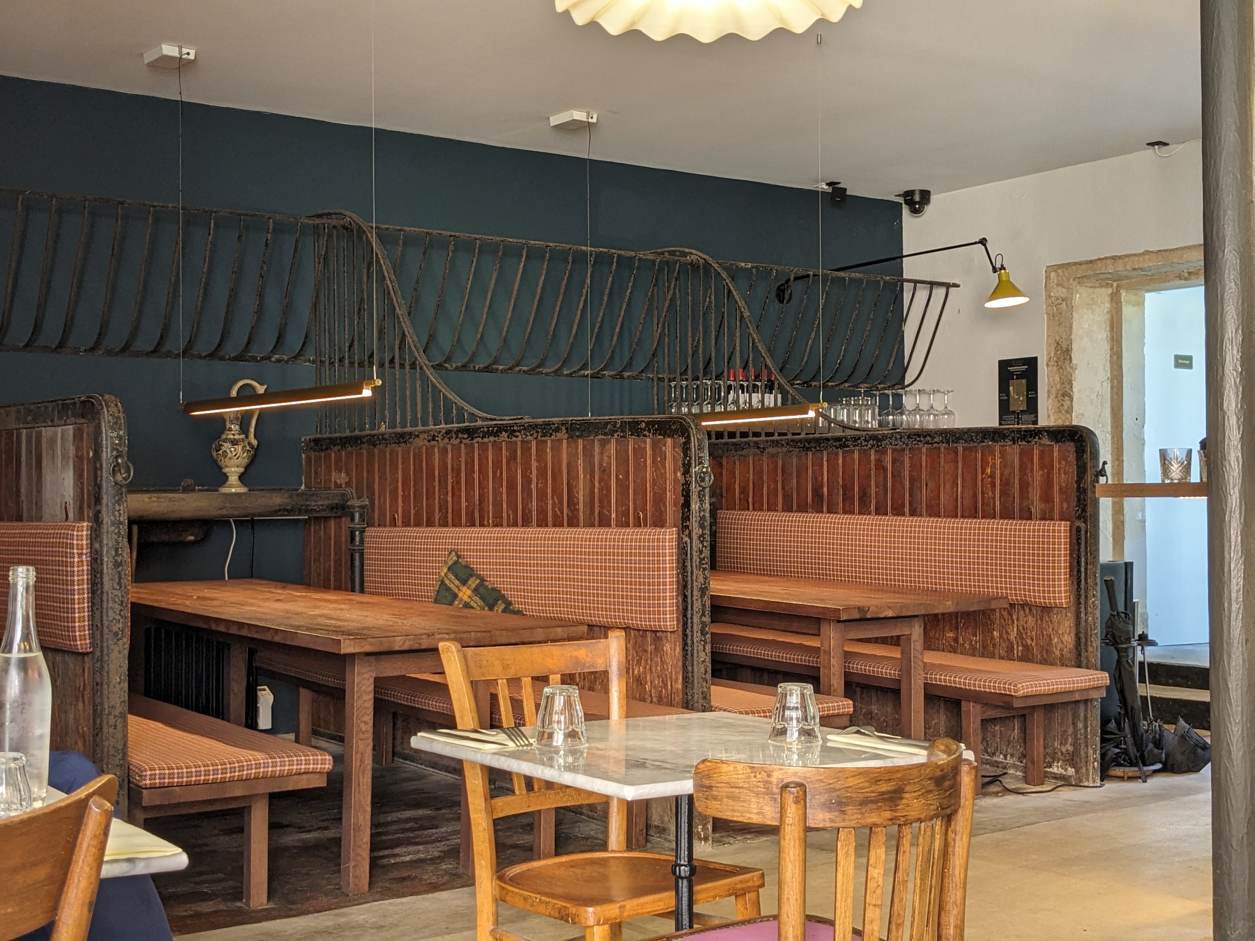 Restaurant idéalement placé dans un lieu atypique et rempli de charme. De jolies assiettes, des idées originales mais la saveur n'était pas au rendez-vous La tarte aux échalotes en plat était peu copieuse pourtant impossible à finir car très sucrée. La faim a été comblée grâce au pain. Le veau était légèrement brulé par endroit, donnant un mauvais goût à la sauce. Notre table avait été réservée via the forks (-50% sur les plats), soit 8€ à peu près le plat, donc très peu cher pourtant je n'y retournerai pas