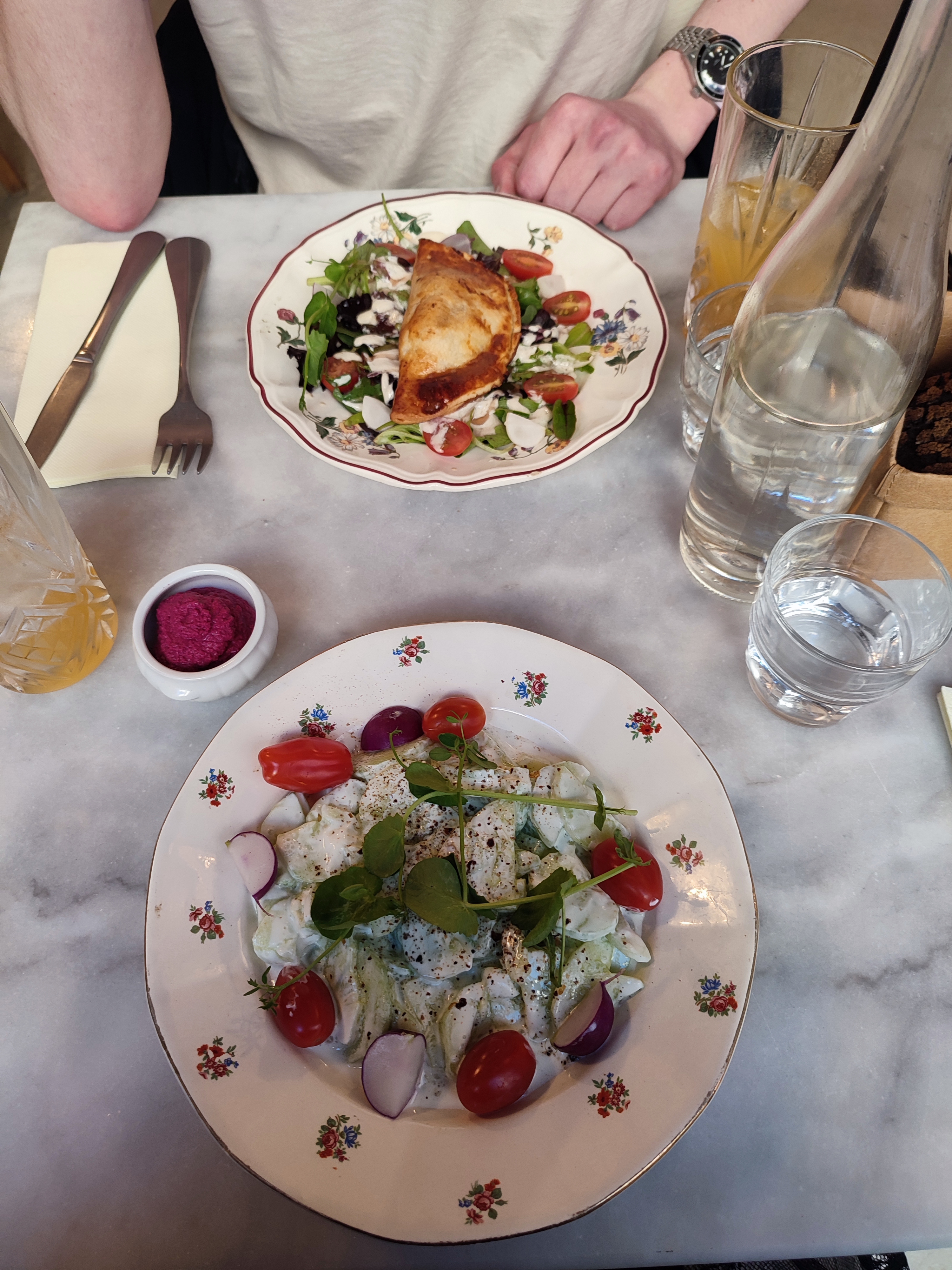 Lieu très mignon, peu de plats ce qui donne envie. Dommage pas de choix végétarien en plat. Les plats étaient corrects par contre service très compliqué. On est obligés de réclamer : le pain, sel, poivre, serviettes de table et même.. les couverts. Les serveurs mélangent les commandes et ne se souviennent pas d'être venu prendre notre commande a peine quelques minutes avant (je ne parle pas d'oublier ce que nous avons commandé, le serveur ne se souvenait même pas d'être venu nous parler). A ressayer d'ici 1 an mais il faut vraiment qu'ils s'améliorent