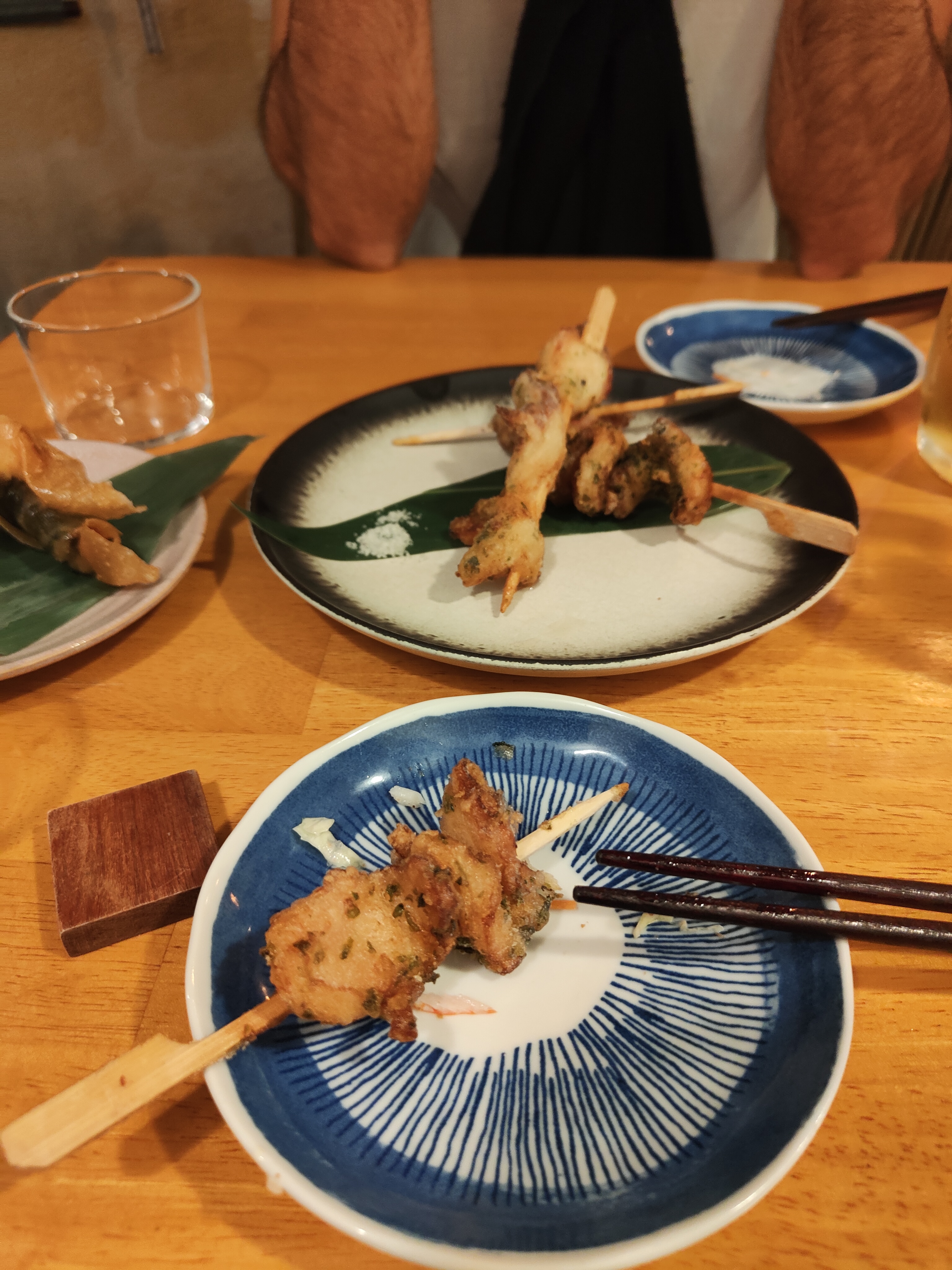 Petit Izakaya mais très délicieux ! Les portions étaient assez petites mais comme nous étions plusieurs nous avions partagés nos plats, nous avions été tous repu à la fin ! ( en moyenne 2-3 plats par personne ) du coup je recommande d'y aller à plusieurs 👍 Coup de cœur pour le mochi glacé !! La pâte de mochi était vraiment délicieuse, et n'était pas trop fine, la glace vanillée et l'azuki était également excellente !