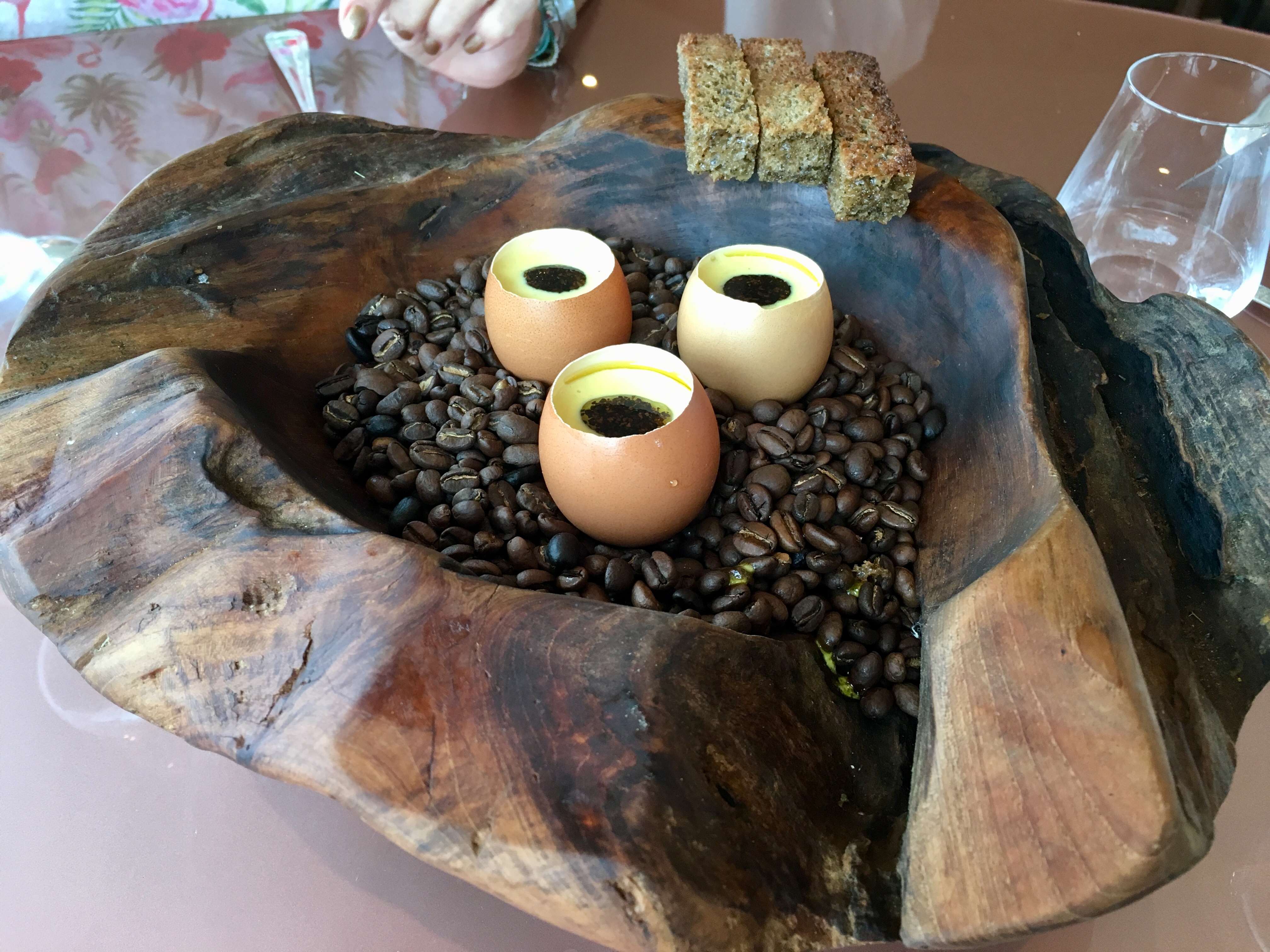 J’ai mis du temps pour rédiger mon avis car je voulais être vraiment sur de celui-ci, tant j’ai été surprise par ma déception. Commençons Par les points positifs : le service ! D’un incroyable professionnalisme et d’une gentillesse exceptionnelle, par cette brigade de femmes, à l’écoute et accueillantes. J’ai vraiment apprécié. Par ailleurs, l’endroit est vraiment magnifique même si, venus en soirée d’hiver nous n’avons pas pu profiter de la vue. Sur la nourriture : beaucoup de petits plats, énormément de saveurs différentes. Déjà cela m’a semblé beaucoup trop. Il n’y a pas vraiment de fil conducteur dans la cuisine proposée, juste énormément de plats qui s’enchaînent. Et le problème c’est qu’à faire trop on prend des risques. Je n’ai pas trouvé à mon goût de nombreux plats proposés : trop gras, trop de crème, trop de pâtes (notamment la pâte à raviole..). Peu d’inventivité au final. Ce n’était bien sûr pas mauvais en soi mais j’avais entendu tellement de bien de ce restaurant que je dois avouer que j’ai été déçue, malheureusement.