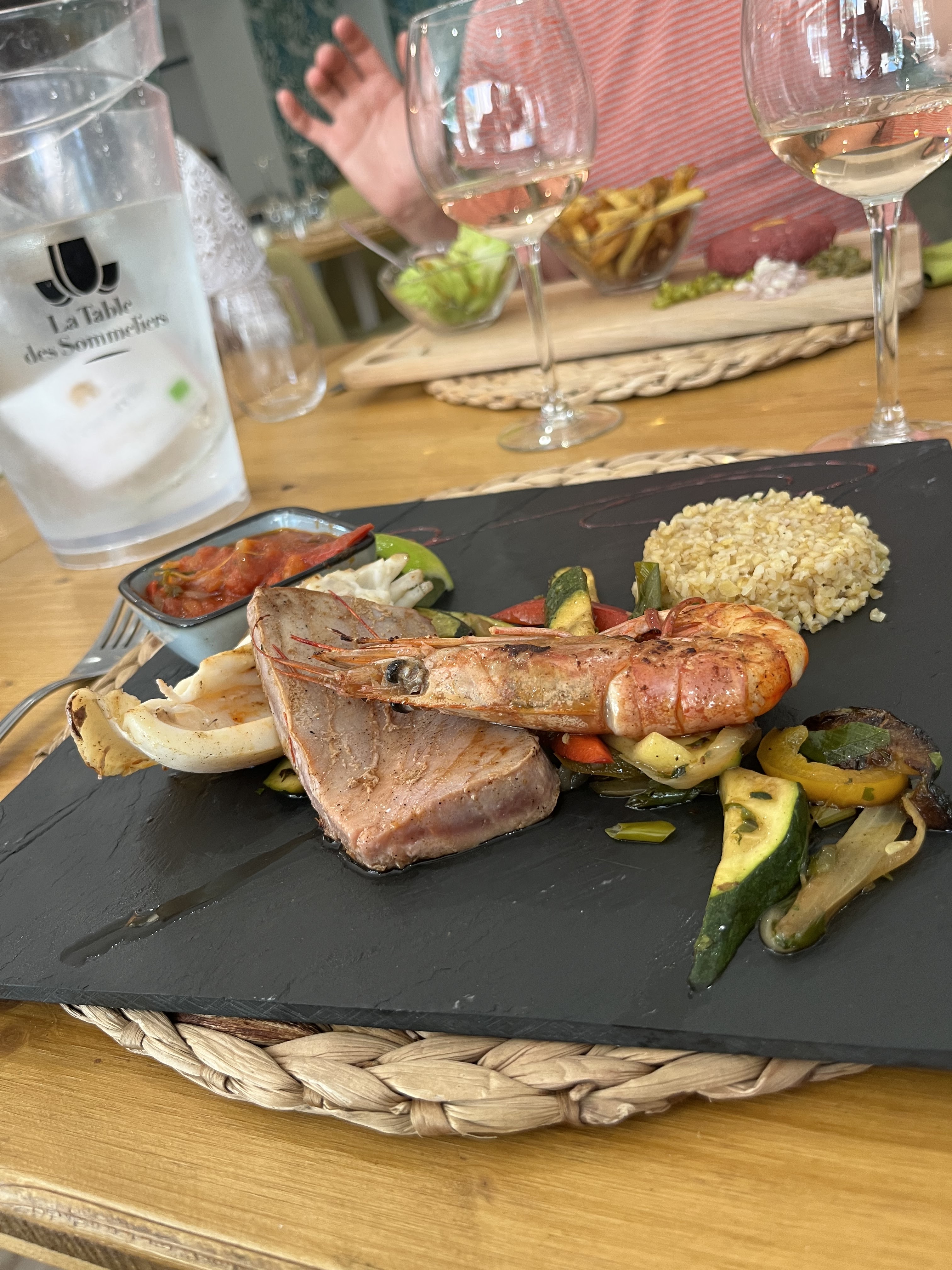 Sincèrement je conseille ce restaurant, les plats sont de choix et de qualités, la musique est bonne et le serveur est charmant et charmeur dans son professionnalisme… 30 octobre 2022 Donc un peu frais pour la terrasse, pour aller fumer la cigarette … Bref un bon moment … Je conseille l après dessert ( voir le serveur ) on sait jamais. C est dans une grande fiole qui ressemble à une marie Jeanne … Bref !