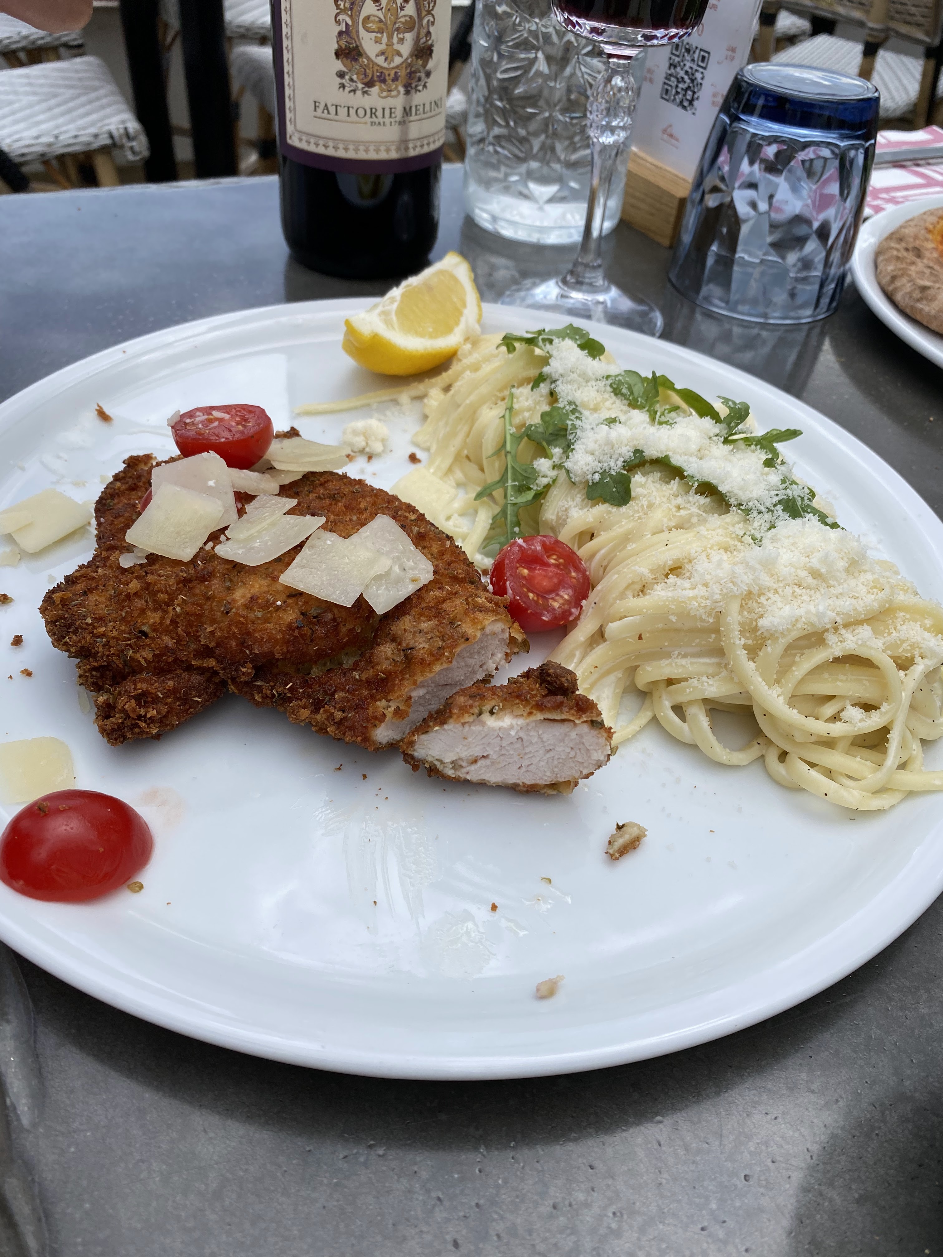 Super accueil, cadre romantique et paisible et je dois avouer avoir manger le meilleur accompagnement de ma vie et pourtant j’ai mangé à Naples. Les spaghettis accompagnants l’escalope étaient un délice pour les papilles.