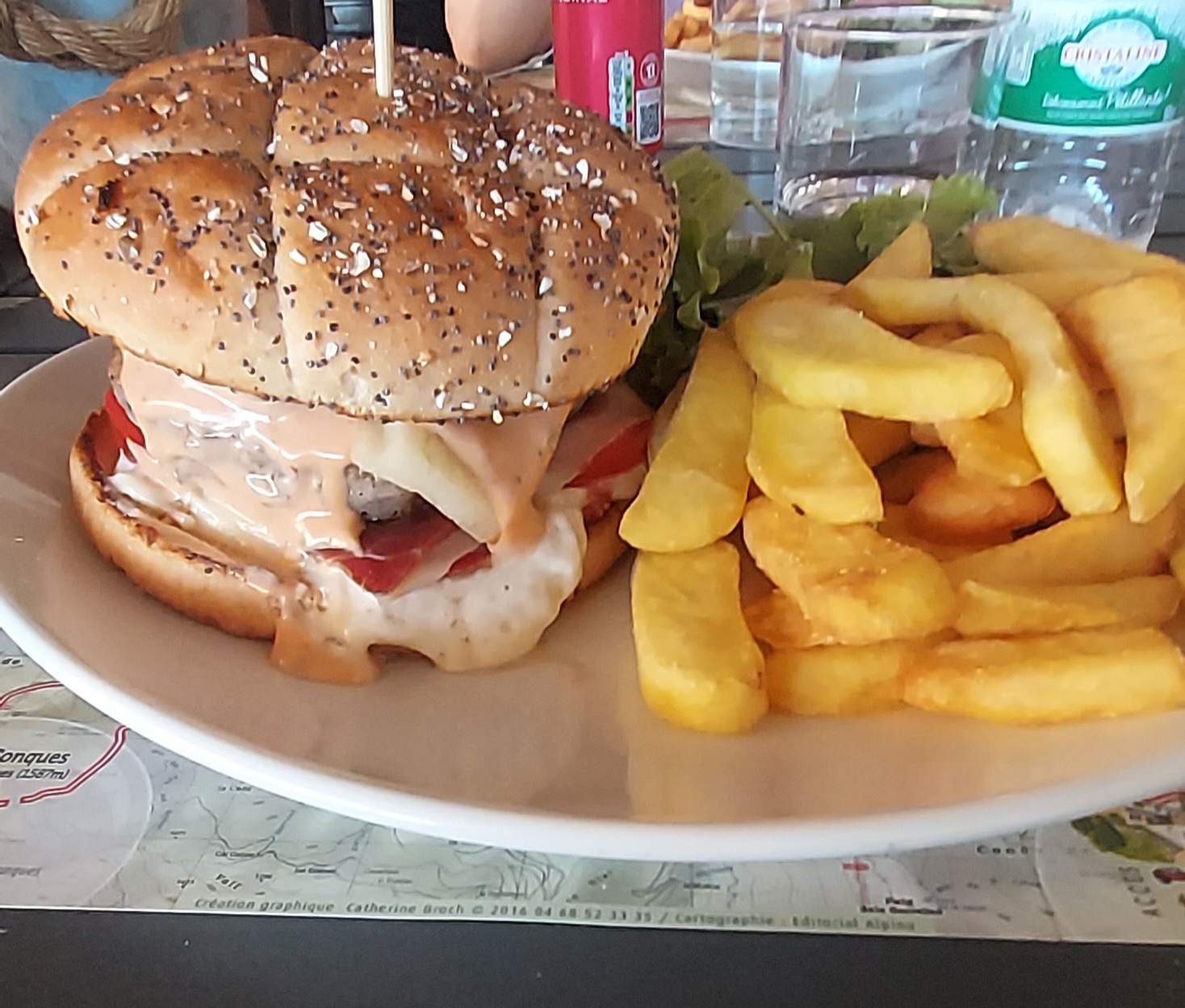 Après avoir été au lac, une petite faim s’impose ! On c’est dit « pourquoi pas? » Dans nos assiettes, un burger Catalan et une belle salade, je vous laisse admirer les plats, on c’est régalé ! Je suis un peu mitigé pour le tiramisu glacé, au final ça enlève le goût du café (on le perçoit moins en tout cas) mais c’était très intéressant et rafraîchissant 🙂. Les tables sont propres, aucun problème avec l’hygiène comme on peut le dire dans d’autres avis. Pensez également à réserver, il y a du monde pendant la période de vacance scolaire, N’hésitez pas ! :).