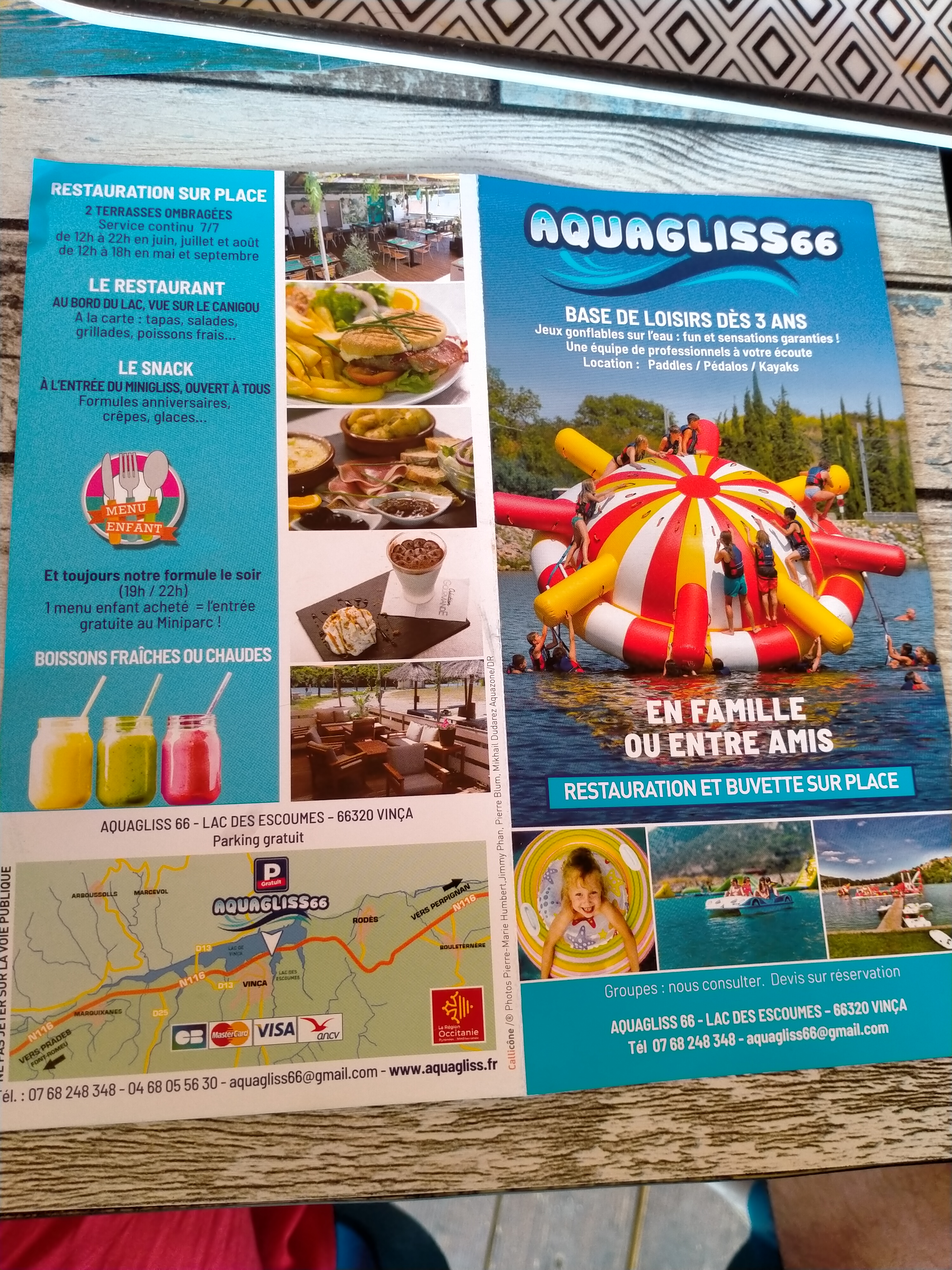 J'ai profité de l'aquagliss avec mon fils de 9 ans + pédalo, nous avons passé une super après-midi, nous nous sommes bien amusés, et sommes repartis chez nous sur Perpignan avec le sourire. L'équipe est très gentille est très agréable, et les prix des activités restent raisonnables comparé à d'autre lieux de loisirs dans le 66. Le cadre est très complet, il y a de quoi s'amuser pour tous les ages, se baigner, se restaurer, etc. Je ne comprends pas les commentaires aigris au sujet de la restauration, du style bouh le snac est bondé et on ne nous sert pas assez vite alors que nous sommes en pleine saison, et que oh surprise! oui il y a du monde, et oui, il fait très chaud, et les salariés courent de partout pour servir tout le monde aussi vite qu'ils le peuvent.