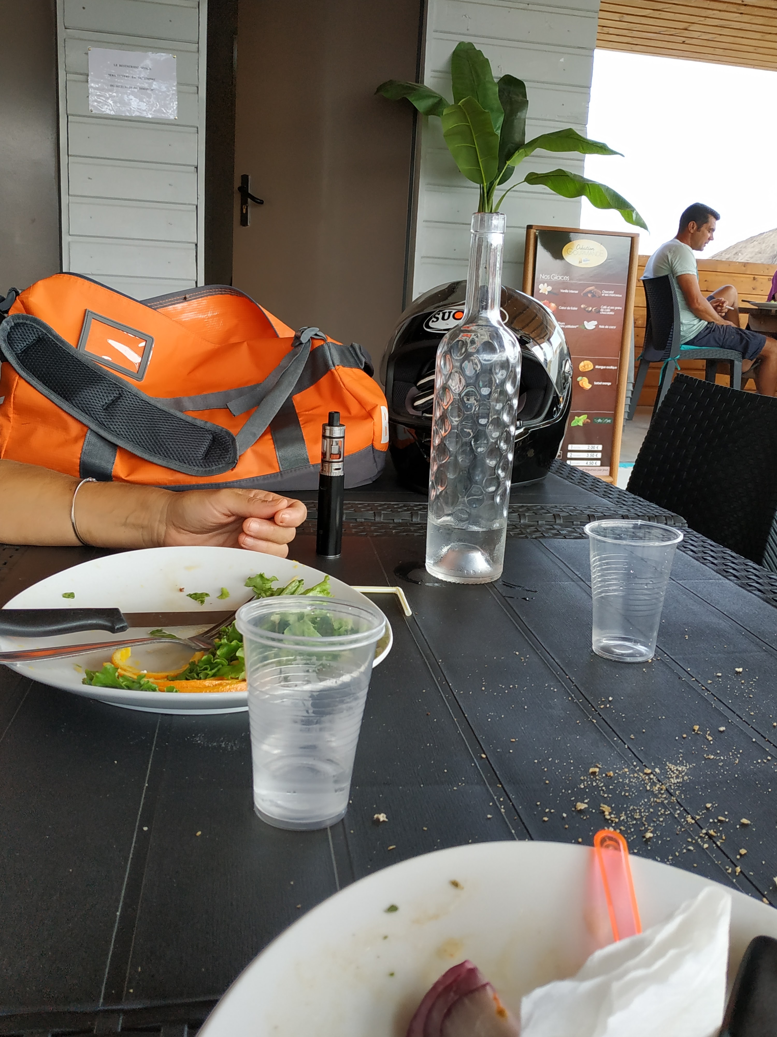 La direction devrait prendre des professionnels pour travailler en salle, je n'ai vu qu'une petite blonde sympathique et bien coiffée prendre son travail au sérieux pendant que le reste de l'équipe discute derrière le comptoir c'est bien dommage Les plats sont bons mais c'est trop chère pour ce qui est proposé (70% de snack) et les gens cont et viennent en maillots de bain pendant que vous mangez C'est vraiment dommage car le lieu est sympathique
