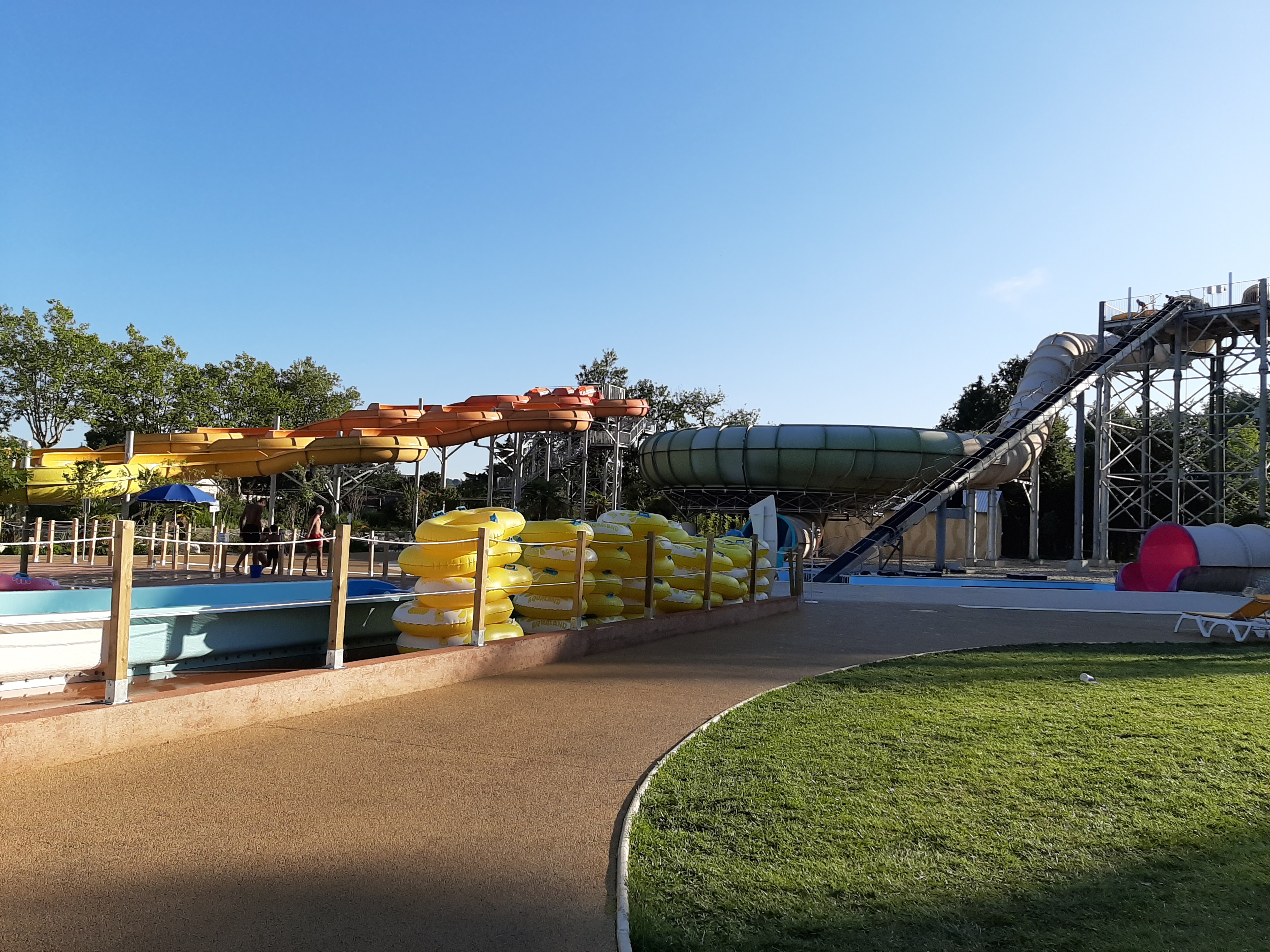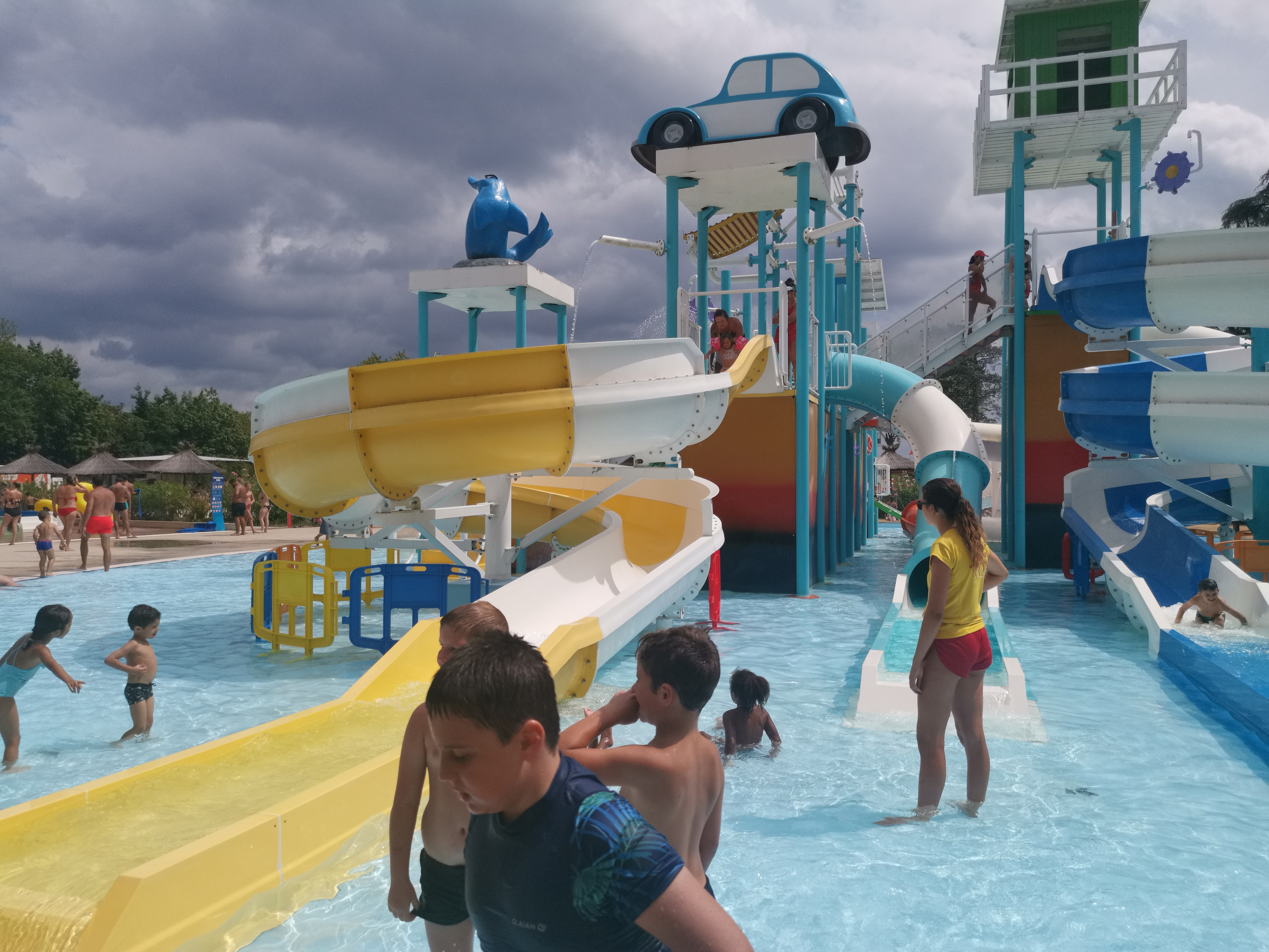 Le parc est sympa, les toboggans variés et l'attente pour les toboggans pas rédhibitoire pour un 08 août (20min environ pour les plus longs). Par contre, venez avec votre gamelle, la file d'attente pour l'unique point de restauration, c'est pitoyable pour un parc : le 08 août, 2h d'attente dans la file pour commander aux caisses et entendre qu'il n'y a plus de nuggets, de salades. Les caissiers sont aussi aux cuisines à faire les steaks et frites !!! Carton rouge pour la restauration. Prenez vraiment votre repas, et aller manger sur les tables du camping ou ailleurs, ce sera plus rapide.