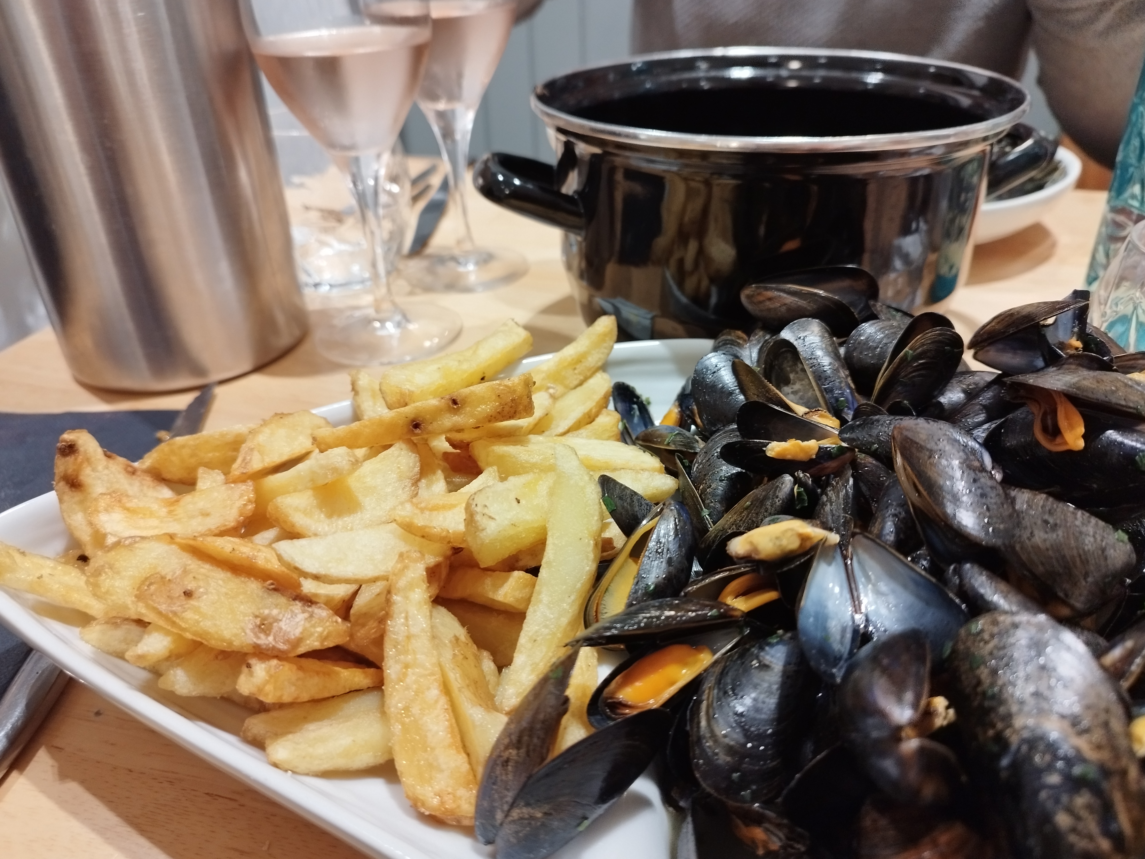Bonne moules avec des frites maison et copieux mais je trouve les desserts un peu chère