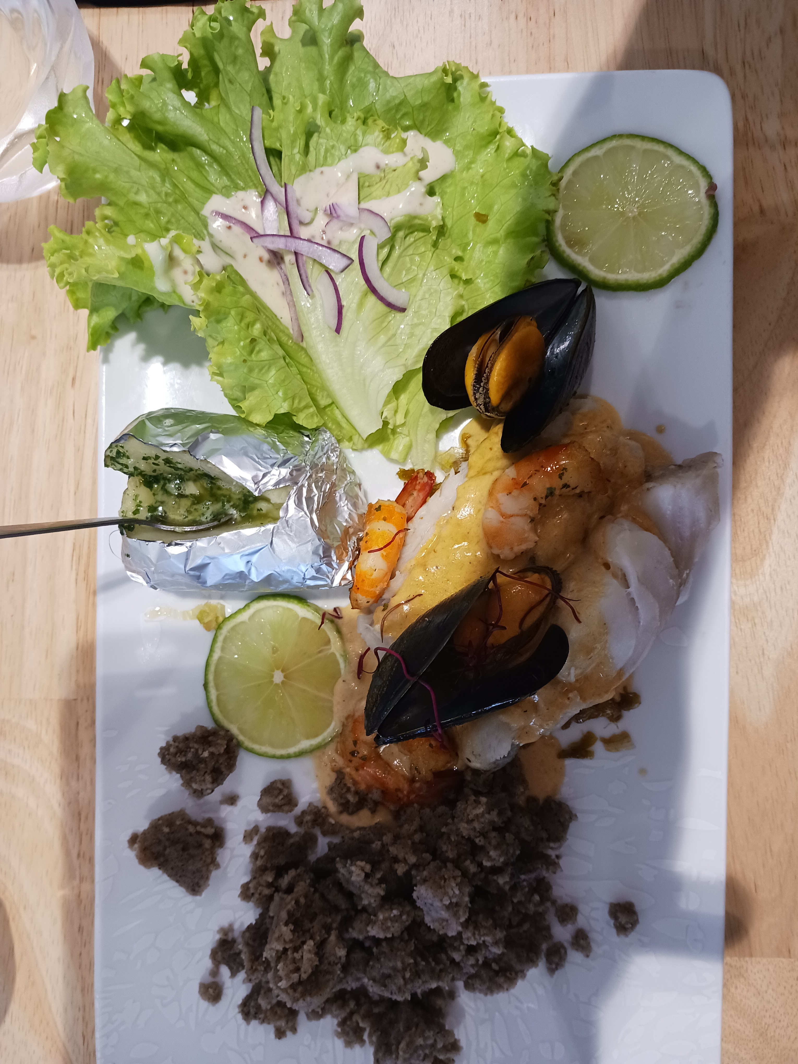 Mon épouse et moi même avons passé un moment magique c'est parfait je dit bien parfait pour une table au plus près de l océan réserver 2 à 3 jours à l avance merci à toute l'équipe et bon vent