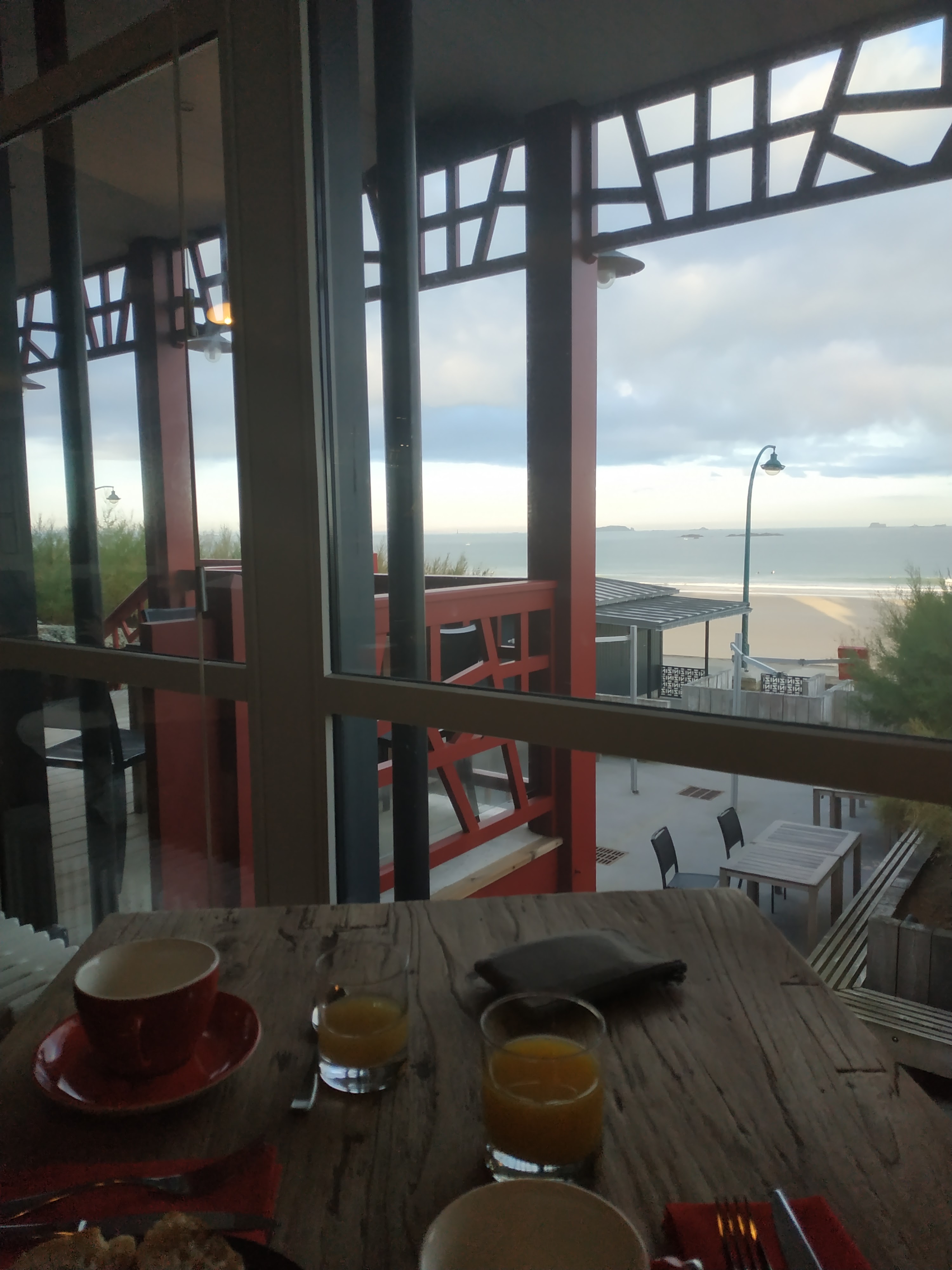 Accès direct à la promenade sur le sillon. Petit déj très bien. Belle vue mer depuis la chambre. La salle de bain accessible casse un peu le charme, on ouvre la salle de bain et on se sent un peu comme dans une (belle) chambre dhôpital.