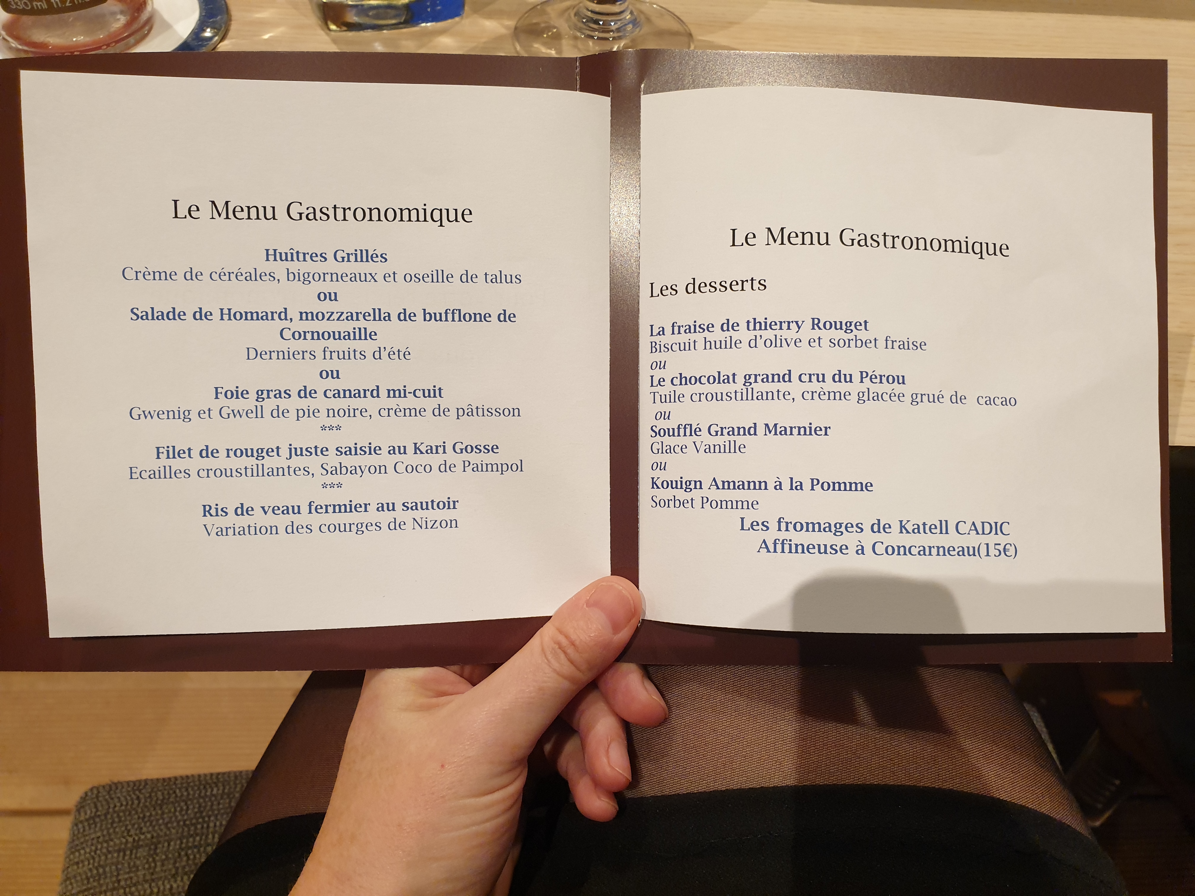 Endroit merveilleux, menu des Glénan, un vrai voyage. Très beau travail autour des légumes, du pain, du kuign aman...les produits locaux sont mis en valeur. Découverte des vins natures d'une rare originalité. Service très agréable. Nous reviendrons dès que possible.