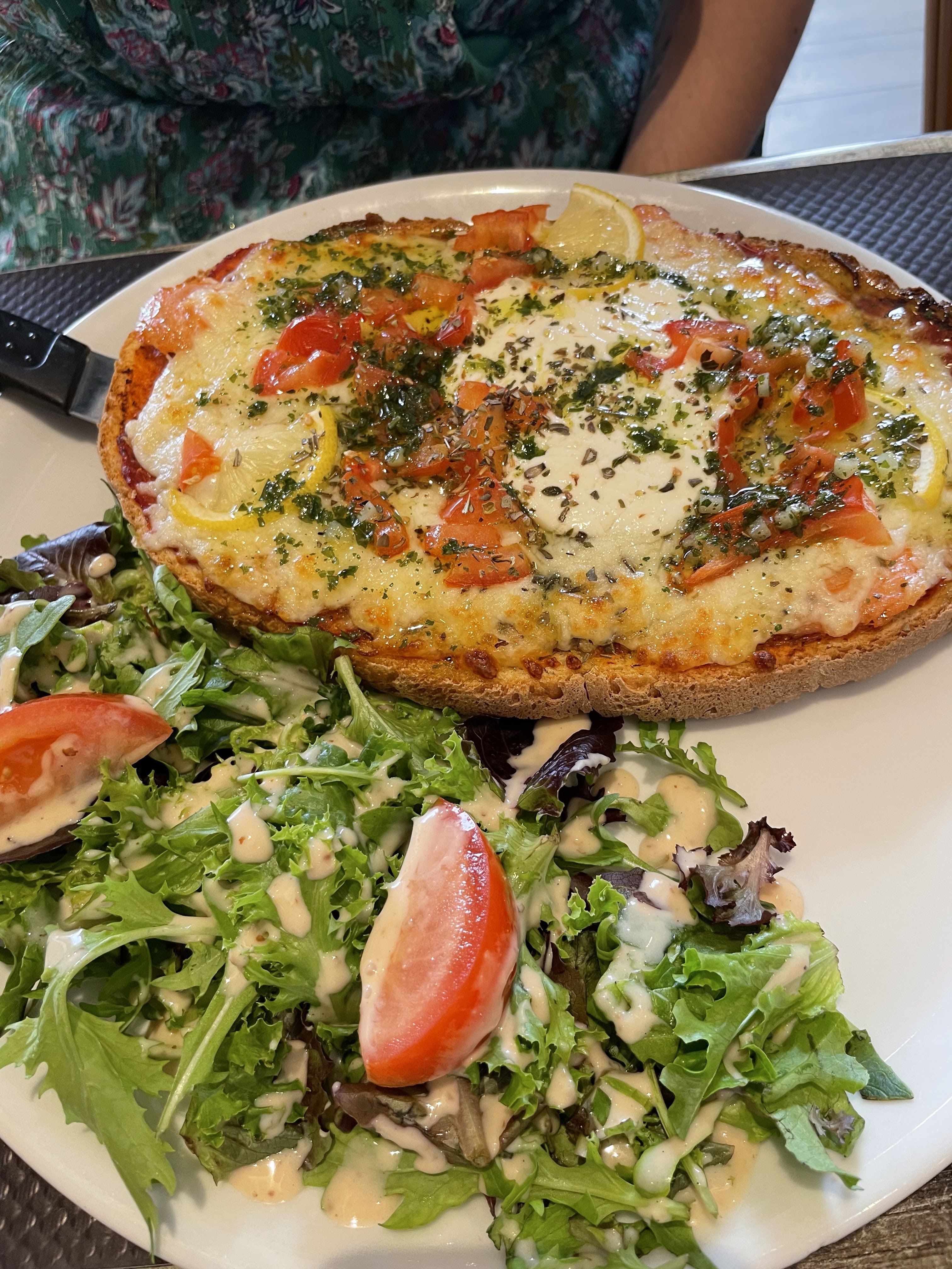 Des plats copieux et frais. Service et personnel très agréable avec une très belle vue. Je recommande sans aucun doute.
