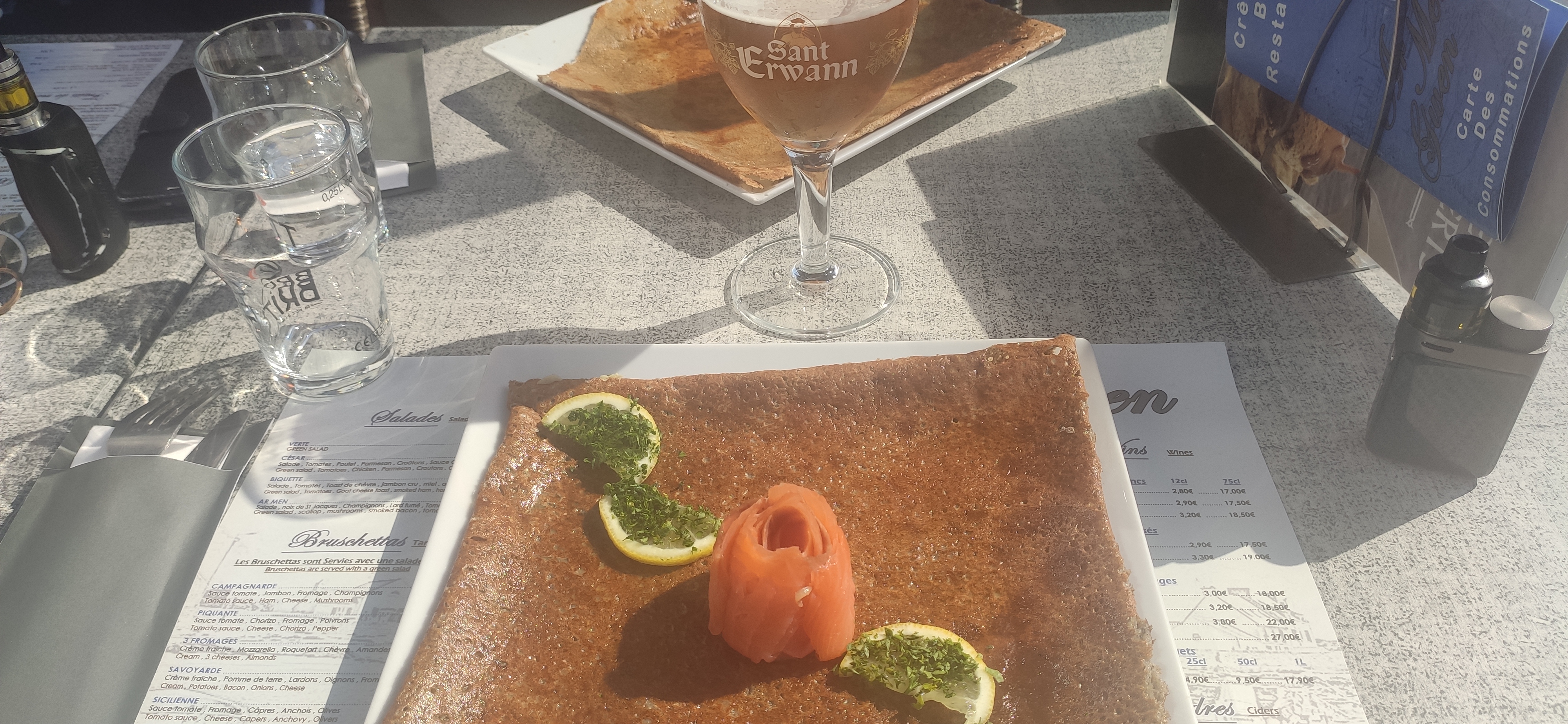 c'est la meilleur crêperie de bretagne avec les crêpes au sarrasin cultiver en bretagne sans oublier les poissons frais du jour les serveur qui son au top donc je vous invite allez les voir vous serez pas déçu