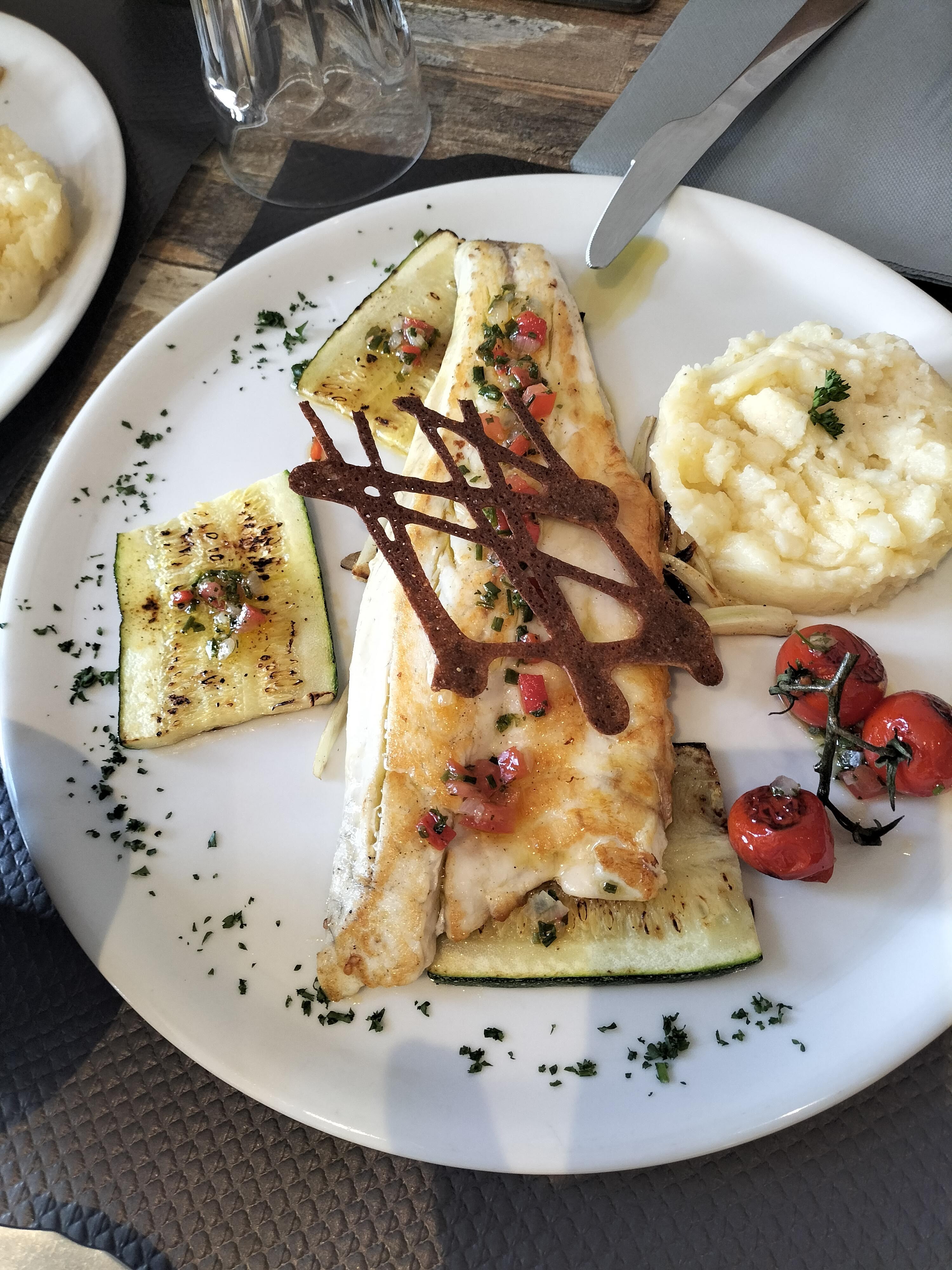 Super repas, produits frais de la mer et savoureux ! Cuisson des poissons maitrisés par le chef Nous nous sommes régalés avec un simple cabillaud sauce beurre blanc et une brochette géante aux gambas