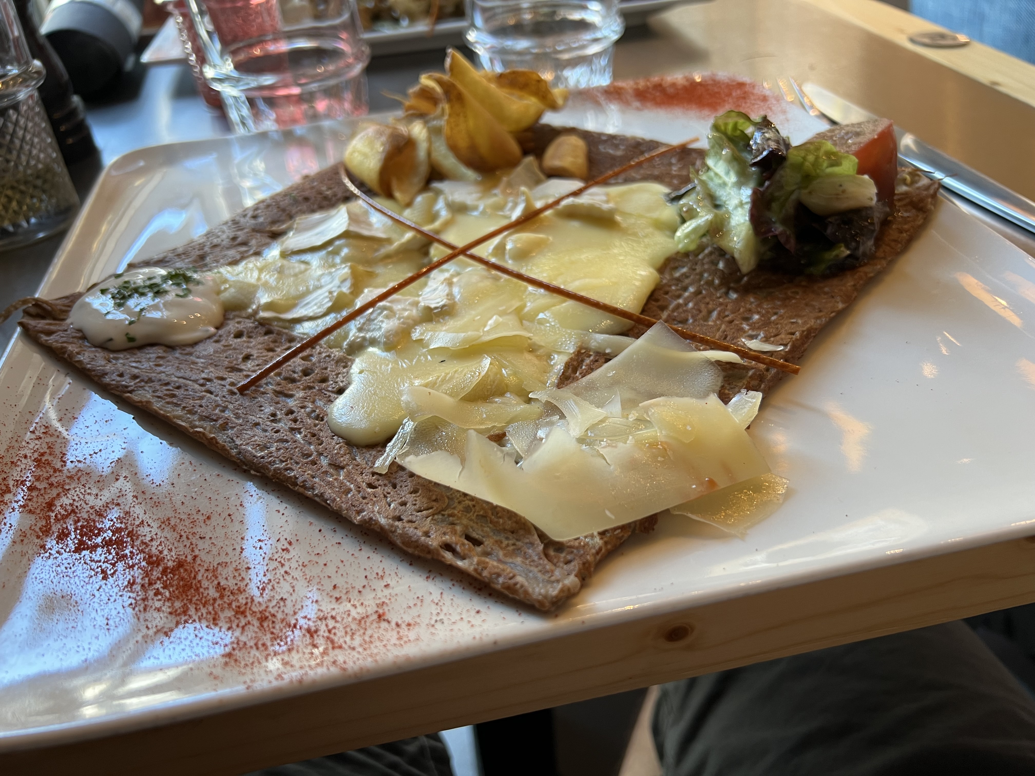 La crêpe jurassienne sans comté, quel dommage, mais très bonne quand même 😊 service après commande un peu long, mais finalement ça vaut le coup d attendre !