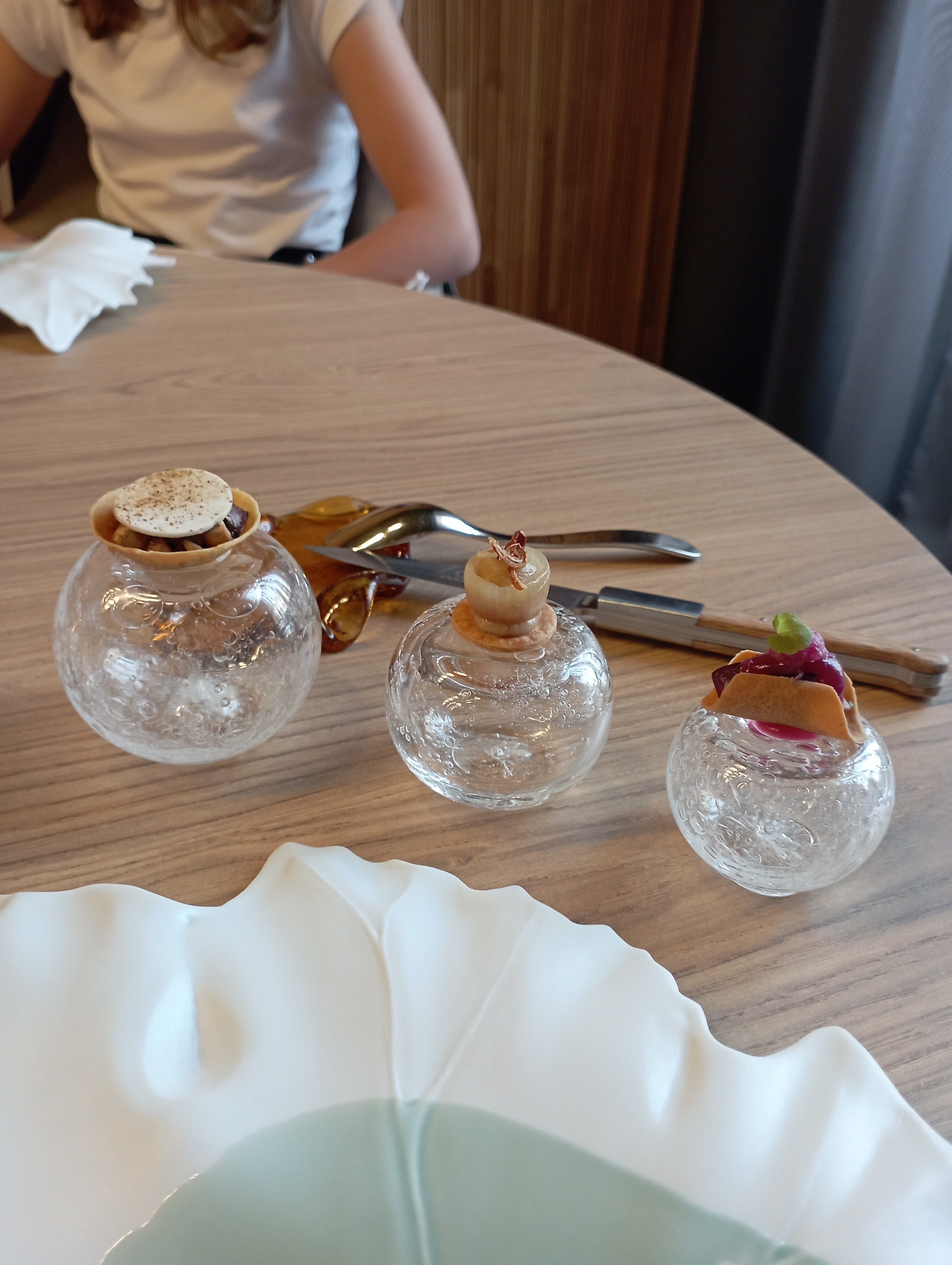 Ce restaurant mérite largement deux étoiles Michelin. L'accueil est très poli et vous êtes immédiatement invités à l'étage pour l'apéritif. La conception spatiale est magnifique. Une grande attention a été portée aux matériaux utilisés. Ici, on peut dire que tout a été planifié dans les moindres détails. Le champagne sélectionné est incroyablement bon. Même la carte des vins conçue est un point fort. La nourriture est excellente et super savoureuse. Il n'y a rien à redire ici. Des couverts au service, tout est pensé. Vous devez manger ici. Un grand bravo à la super équipe. 😊