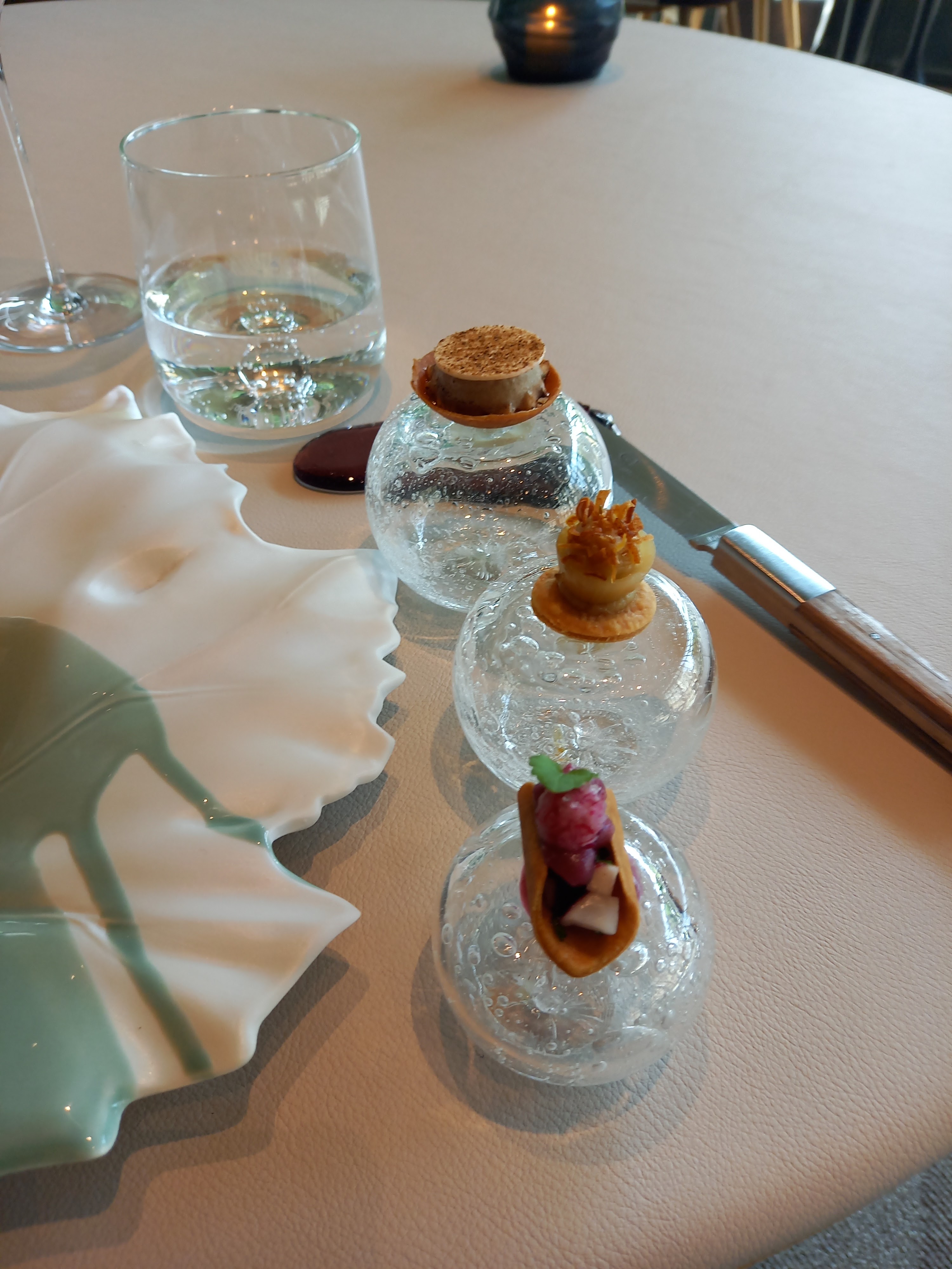 Magnifique moment. Service irréprochable et en même temps simple et chaleureux. Des assiettes aussi belles que délicieuses. Un chef très présent et attentionné.