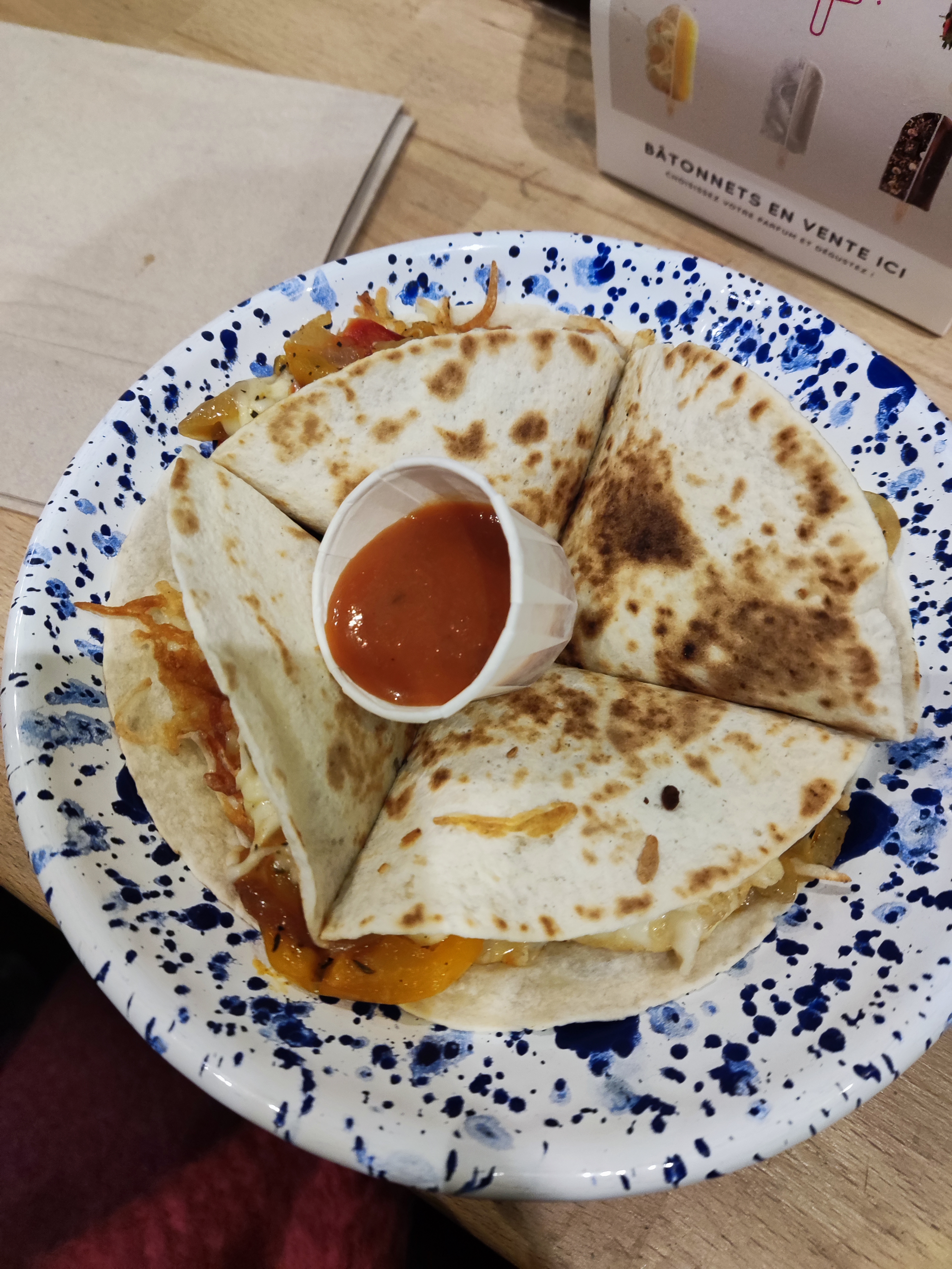 Commandé sur Deliveero. Nous n'avons eu que 2 pièces de quesadillas chacun contre 3 indiquées. Goût quelconque pareil pour le guacamole 3,40 euros un mini pot. Cher pour ce que c'est.