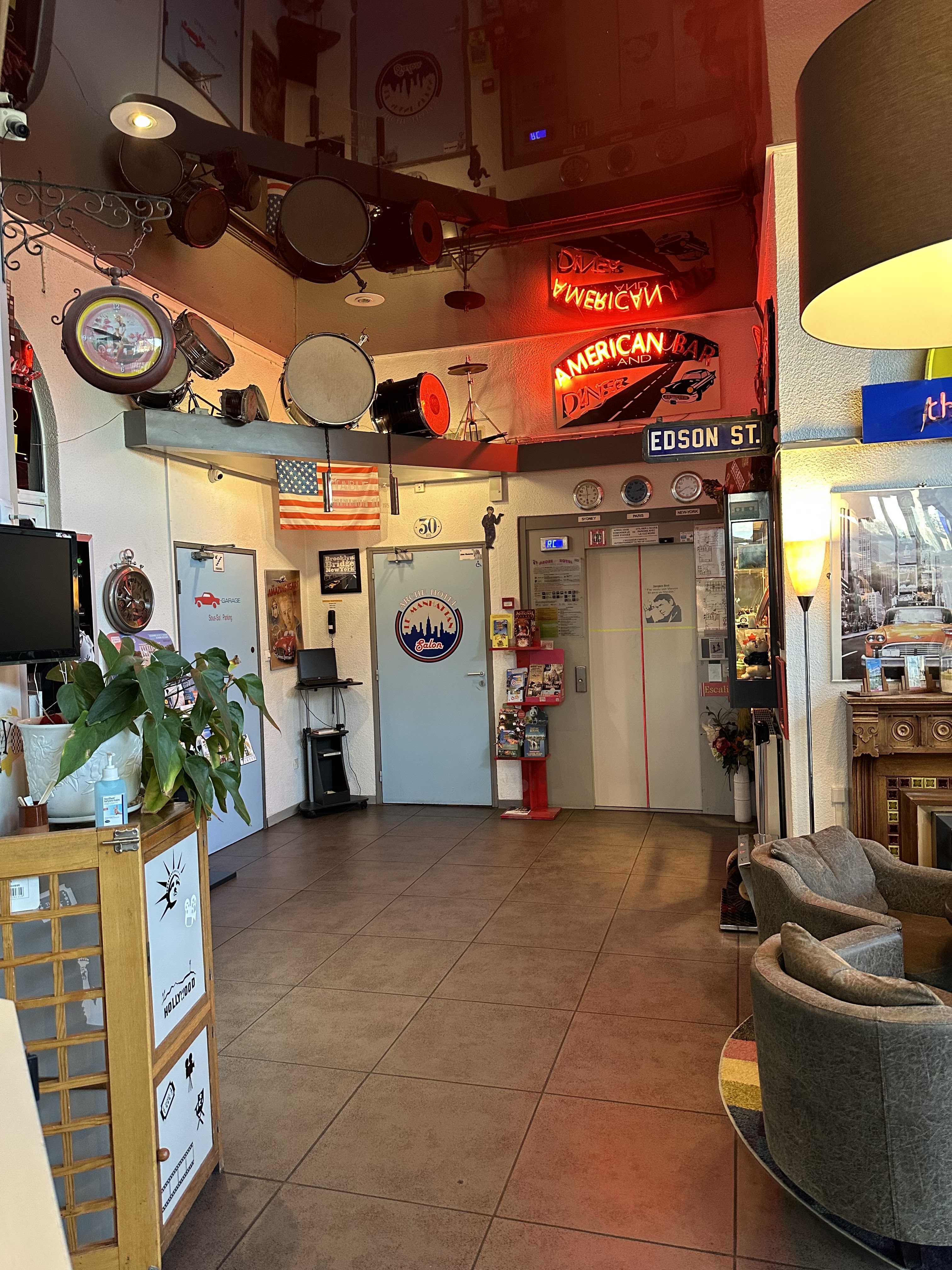 Très bon accueil et le décor est génial années 50 60 et style américain et le cinéma de ces années est présent ! Chouette ambiance !!