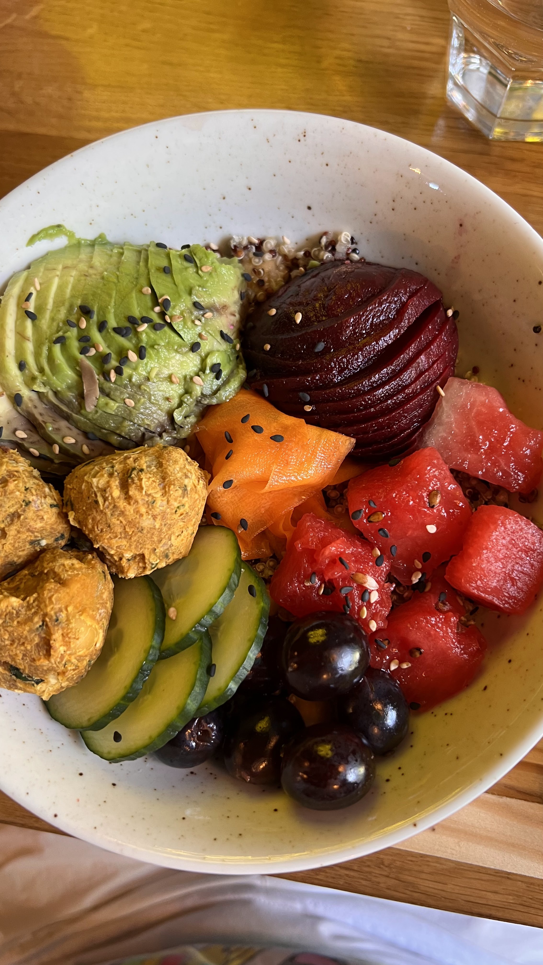 Les jus étaient super mais n'obtenez pas le poke bowl. C'est une véritable arnaque pour avoir payé 14 € pour un petit morceau de saumon fumé et plein de salade immangeable et de riz dur et froid. C'est aussi un prix à emporter 😅
