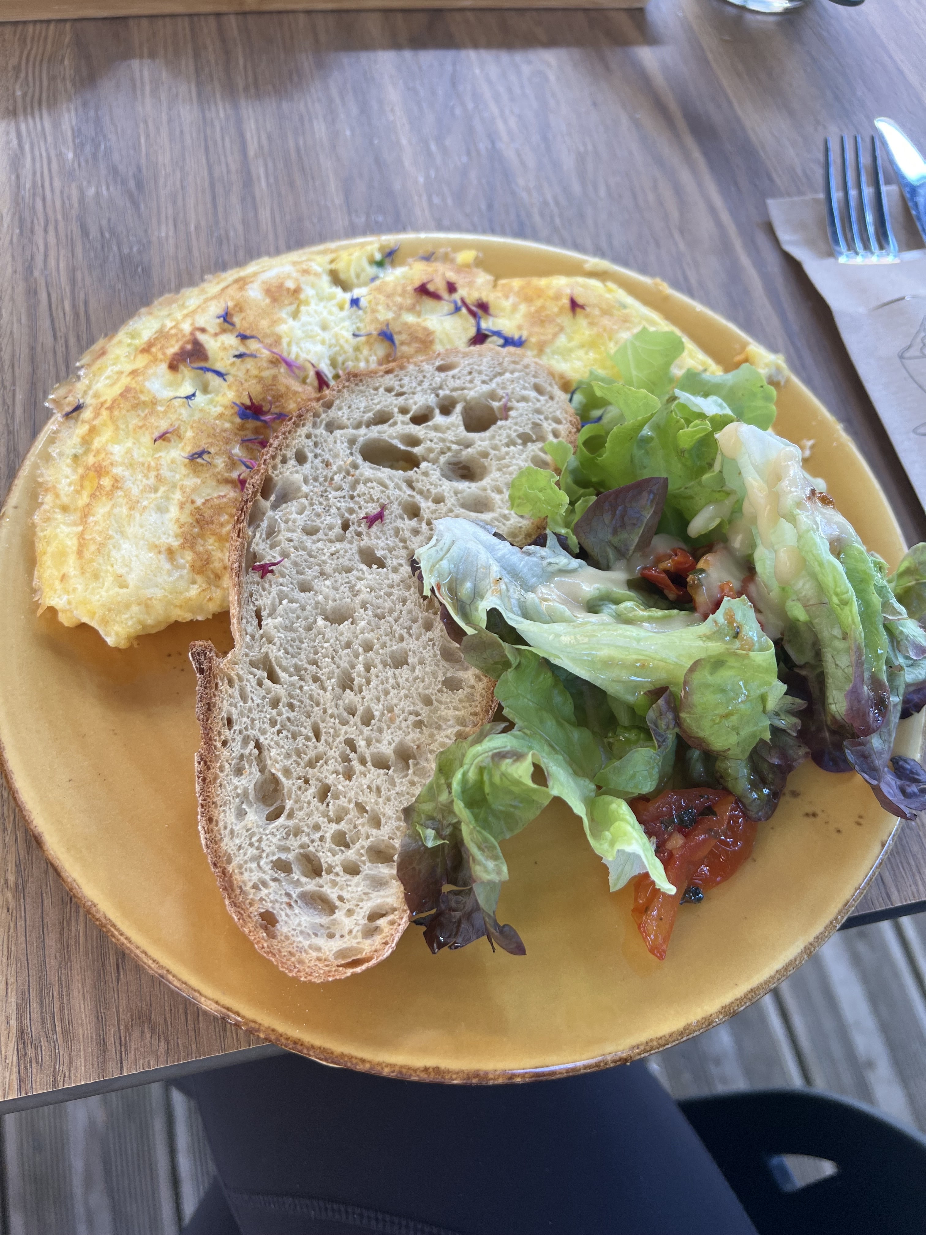 Endroit super sympa et le personnel est adorable mais il faisait très froid entre 9h et 10h30 et l'avocat était meurtri ou vieux (marron), donc n'avait pas bon goût. Beaucoup de potentiel - un menu vraiment sympa et exactement ce dont Chamonix pourrait faire, mais allumez le chauffage plus tôt !