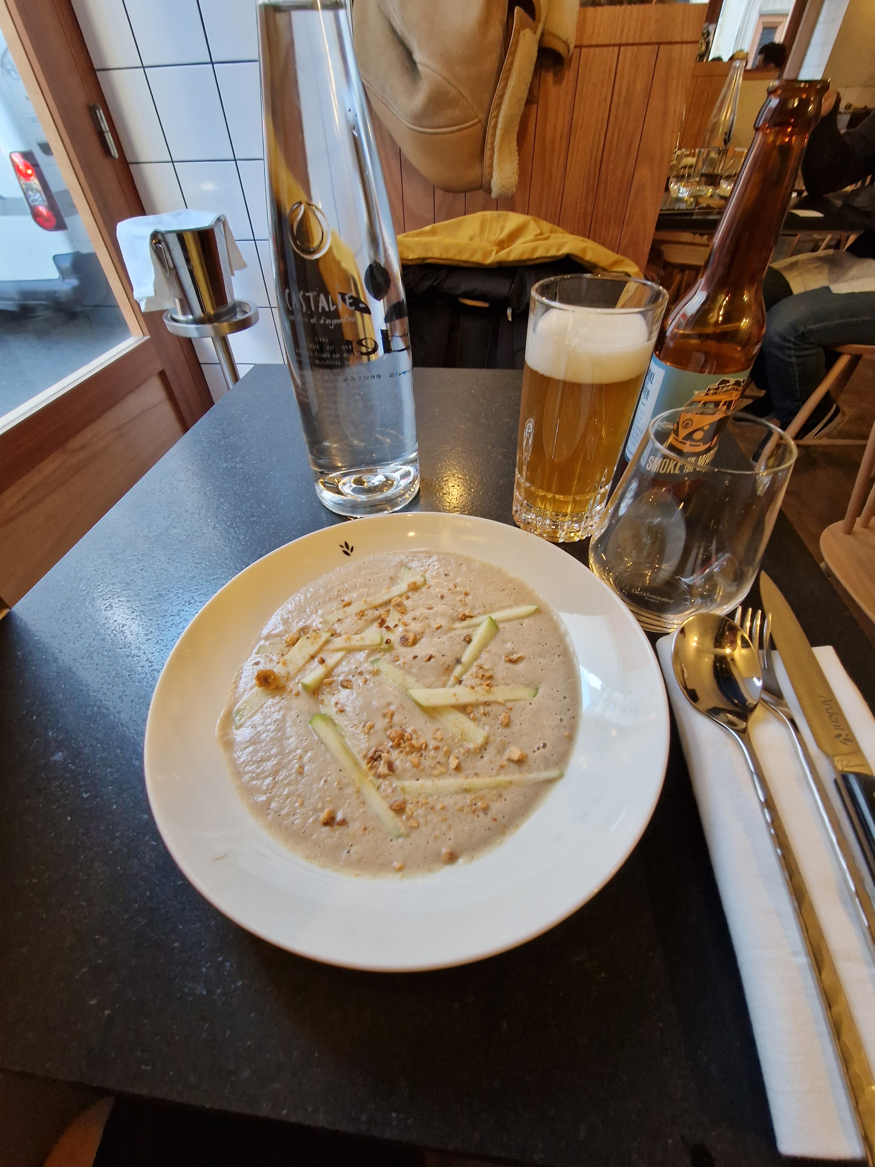 Volaille incroyable et parfaitement braisée ! Service probablement perfectible quand on s’entend dire “je vais fermer dans 10’ !” Ok ok il est 14h40 et nous sommes arrivés à 13h15, mais cool ! La météo du jour se prête à profiter d’un intérieur chaleureux, si cela est acceptable?