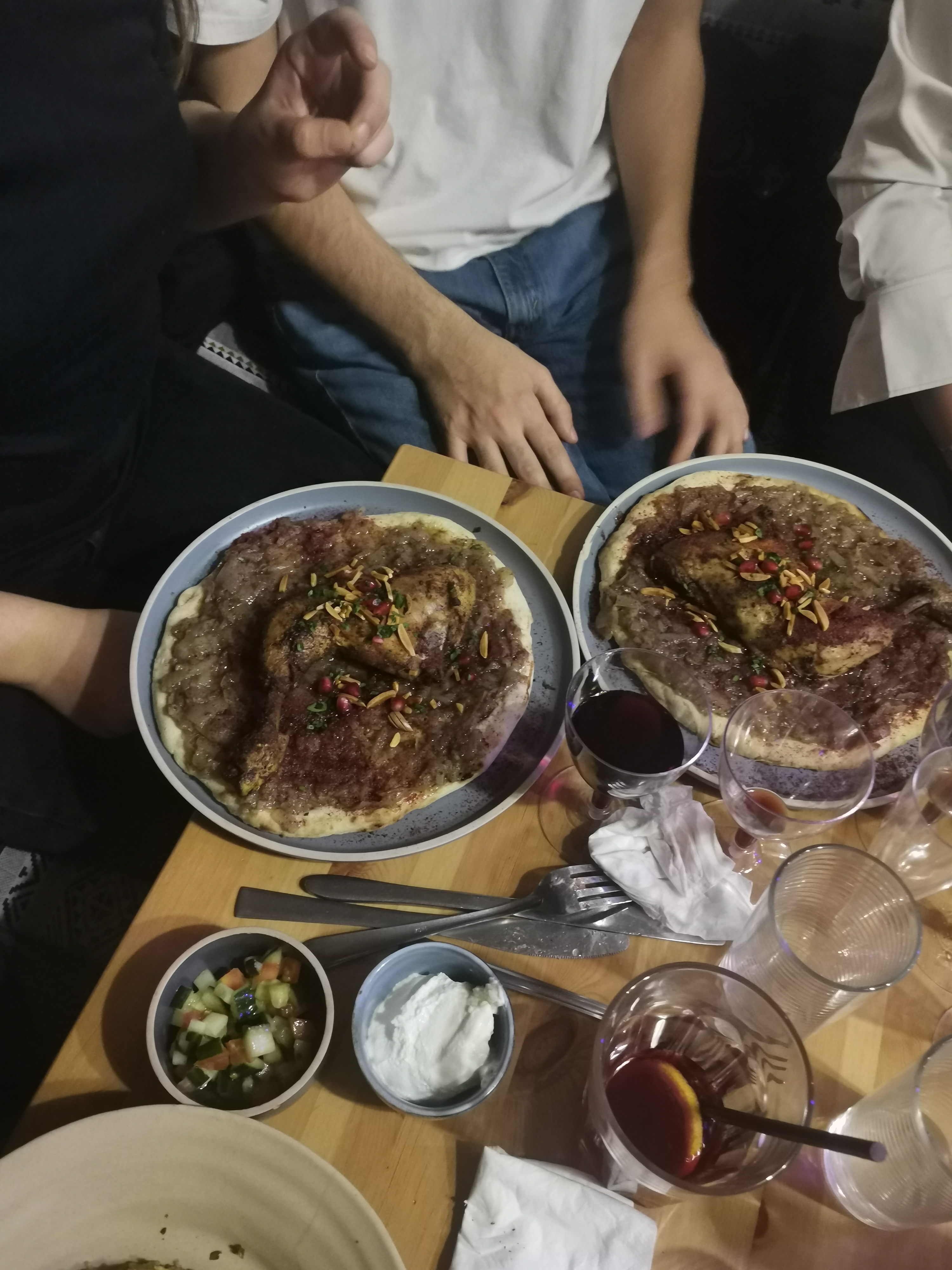 Nous avons ramené un petit bout de Palestine chez nous ce soir. Le Mskhan était à tomber, presque aussi bon que celui de ma mère. Et le makloubeh aux aubergines exqui, je te remercie chère Rania. A recommander absolument !