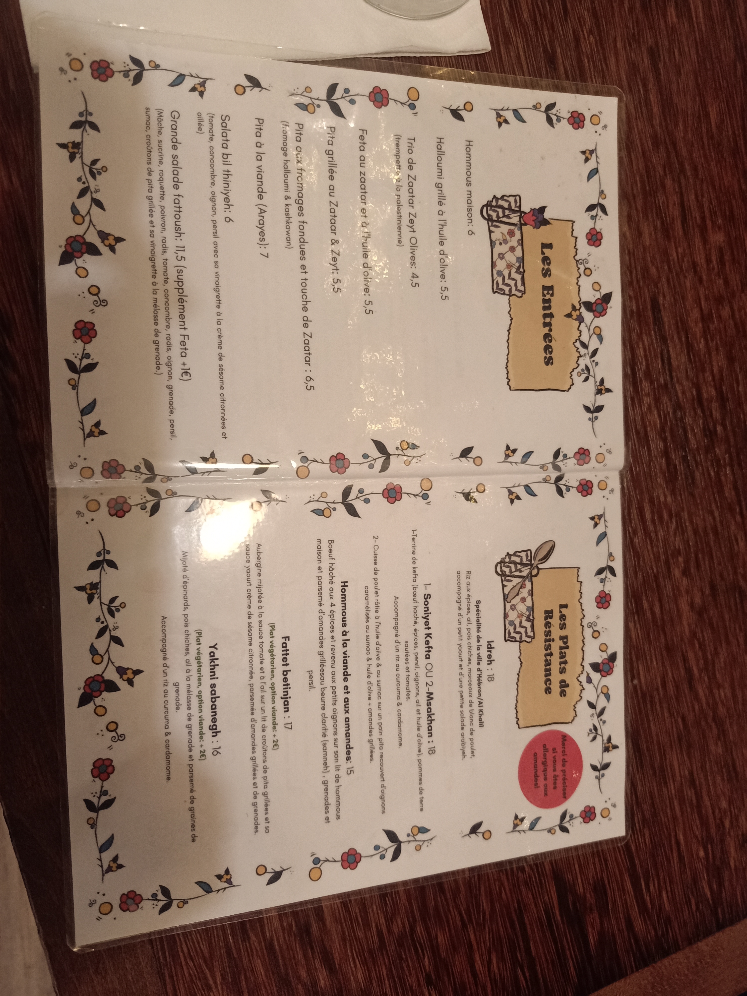 Un restaurant proposant des spécialités palestiniennes délicieuses ! La gérante est adorable ! De plus, l'ambiance du resto presque comme un petit musée, ce qui rajoute une touche spéciale ! Bien que les prix soient élevés, mais la qualité est présente Coup de coeur pour lemsakhen Merci !