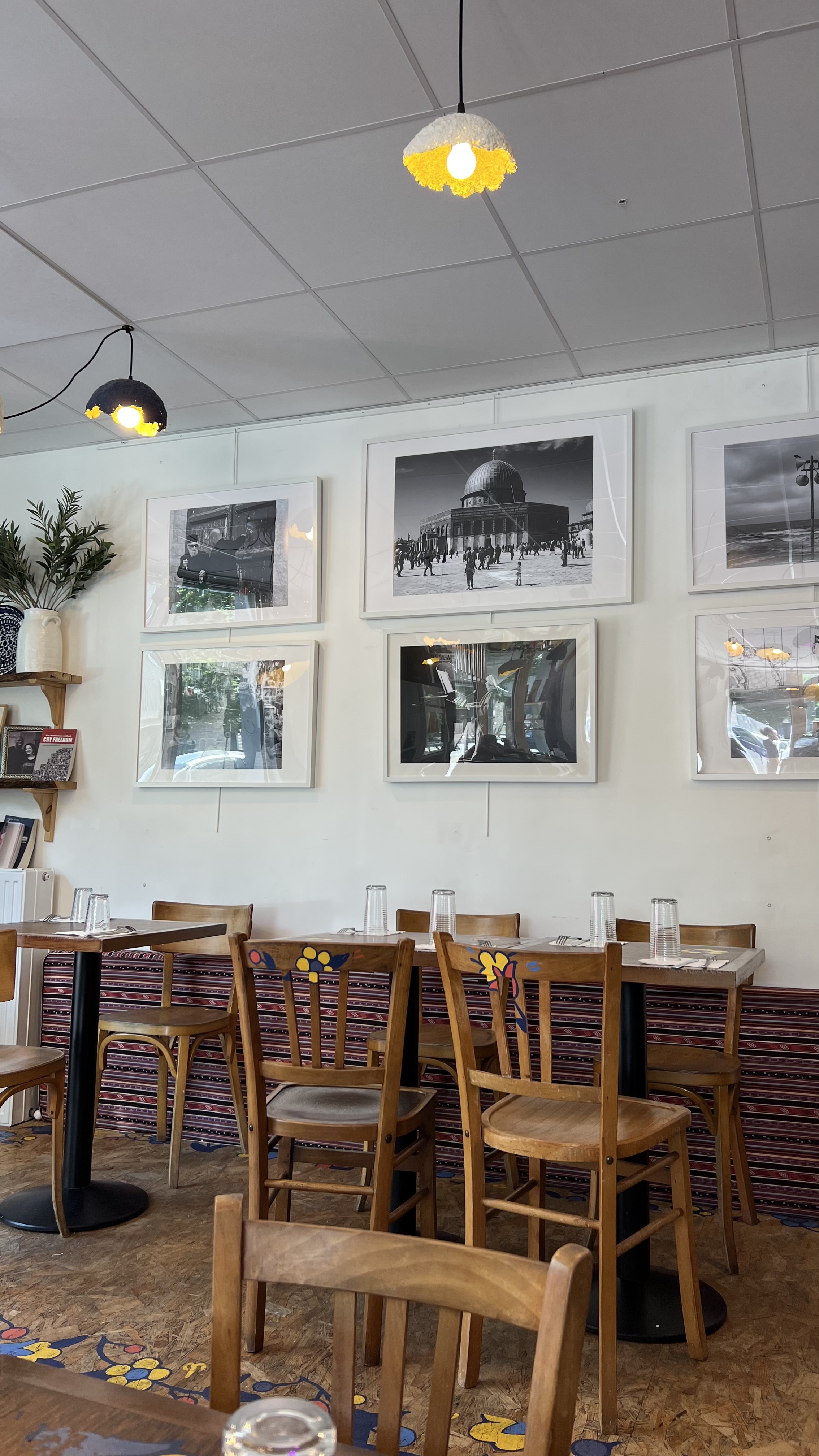 Allez-y les yeux fermés ! Vous serez transportés en Palestine. La salle est décorée avec soin avec des objets et tableaux évoquant directement l'identité culturelle Palestinienne. Les assiettes sont généreuses et bien exécutées et sont une invitation directe au voyage au Proche-Orient. Dépaysement garanti ! En prime service et accueil agréables et efficaces.