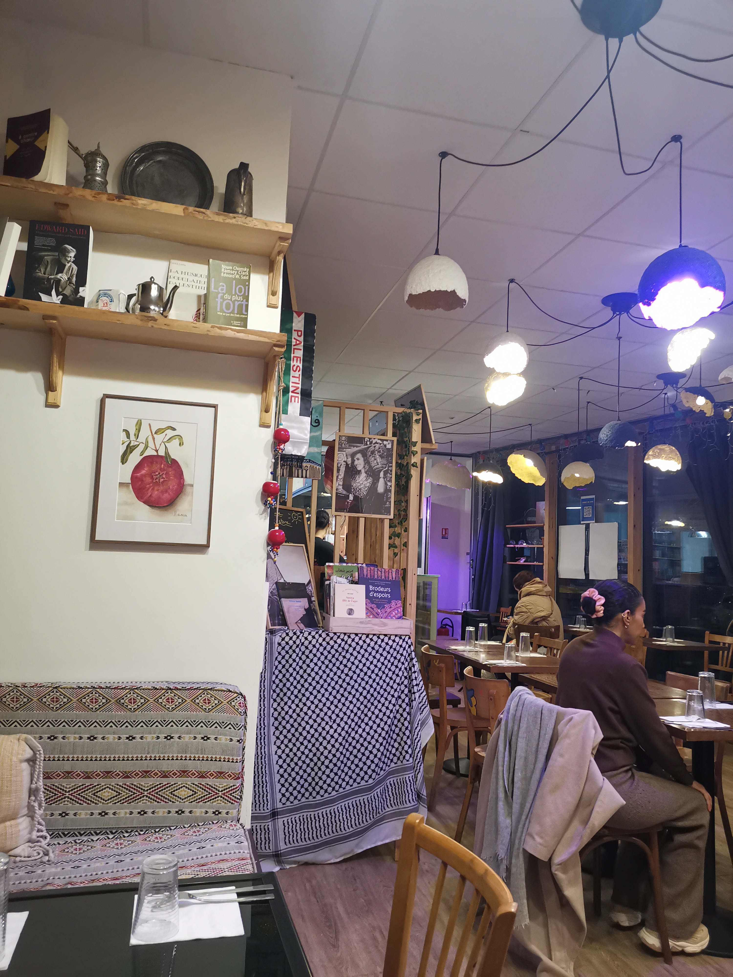 Une adresse à ne pas manquer , un lieu chaleureux , on s y sent comme chez nous, une équipe souriante et attentionnée. On y découvre des saveurs de la cuisine levantine, un plaisir !!! Vous pourrez aussi voir une expo d une artiste palestienne Rand Dabbour une joli découverte . On s y sent bien 😍