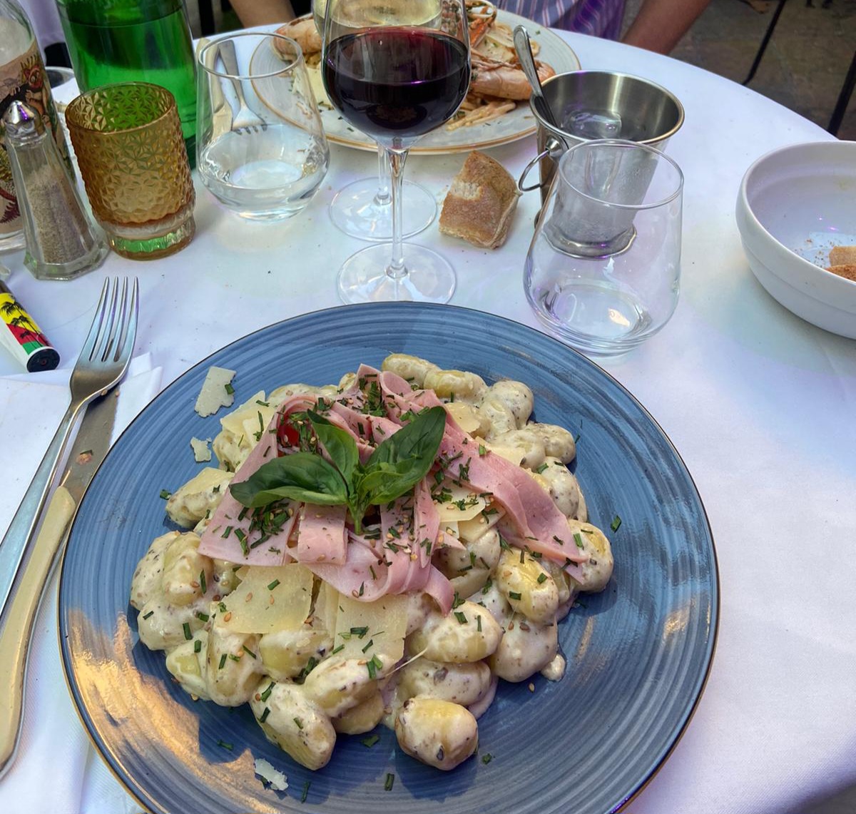 Attente monstrueusement longue. J'ai commandé des gnocchis à la crème c'était plutôt une soupe aux gnocchis avec plus de jambon que de gnocchis, je chercher encore la truffe ... Et une salade burrata payé trop cher pour ce que c'est, avec j'ai eu des frites, je prends pas une salade pour manger des frites. Merci aux 3 tranches de tomates de 4mm de largeur. Cocktail trop sucré sans plus.