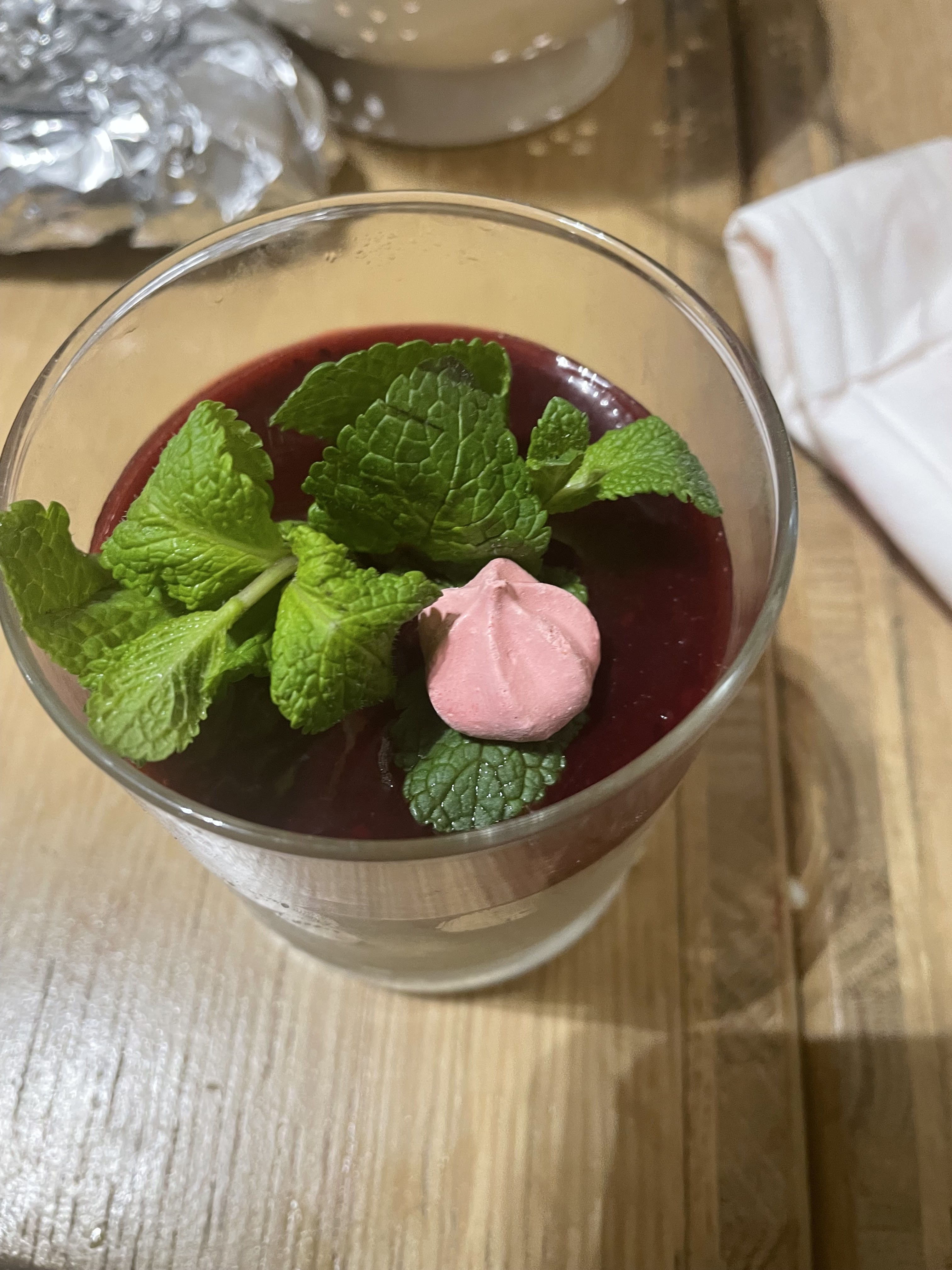 Sirop de fraise : coupé à la bière, ou à autre chose. On ne sait toujours pas ce qui nous a été servi. Panna cotta avec une crème de marron liquide. Repas correct pour le reste Serveur peu agréable